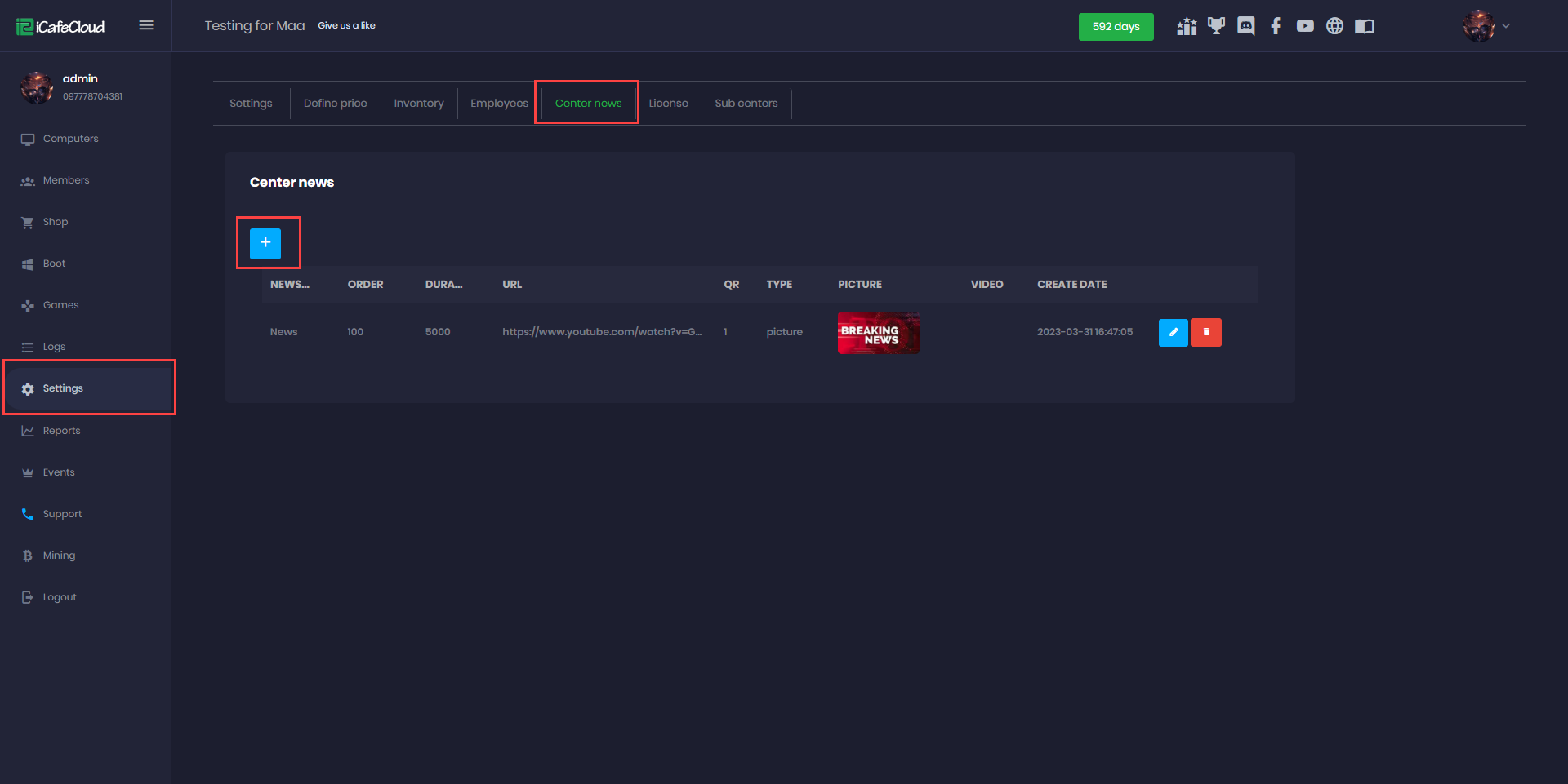 - Go to Settings page > Center News and click the “+” add button (Figure 1).