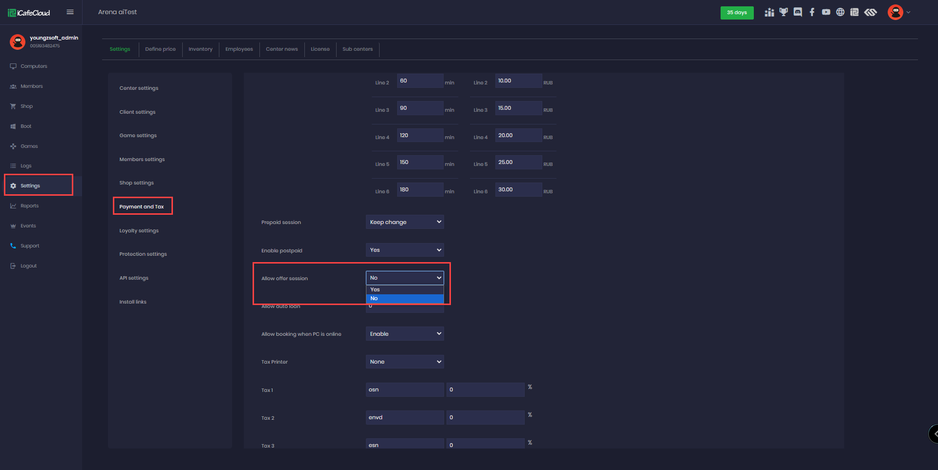 - Navigate to Settings - Payment and tax - Allow offer sessions change to “NO”. (Figure 1)