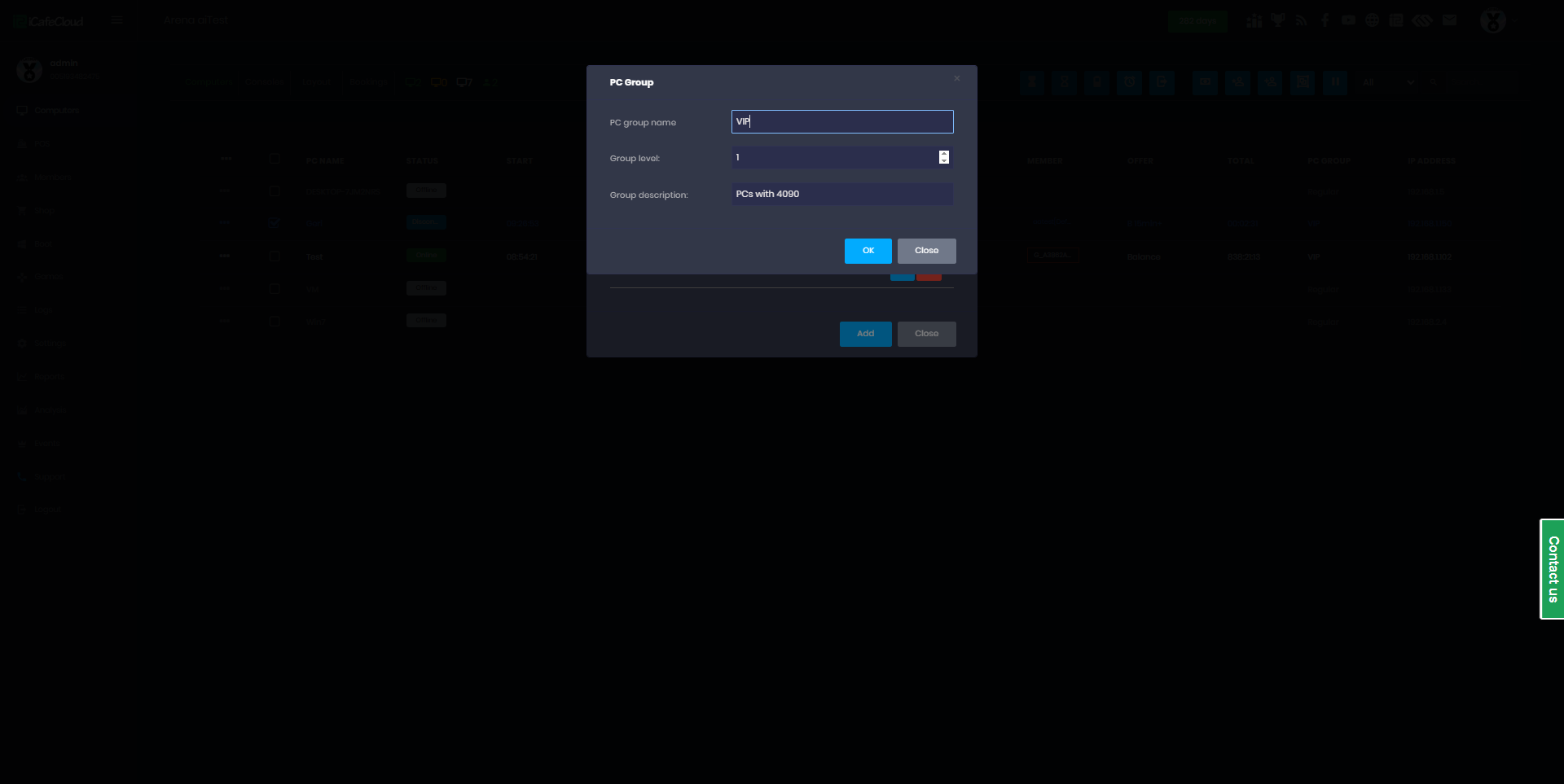 The following explains how to create and use PC groups and levels to organize computers by category (ex VIP, regular etc). After creating groups on the PC management page, you can assign specific pricing and offers to each group.
