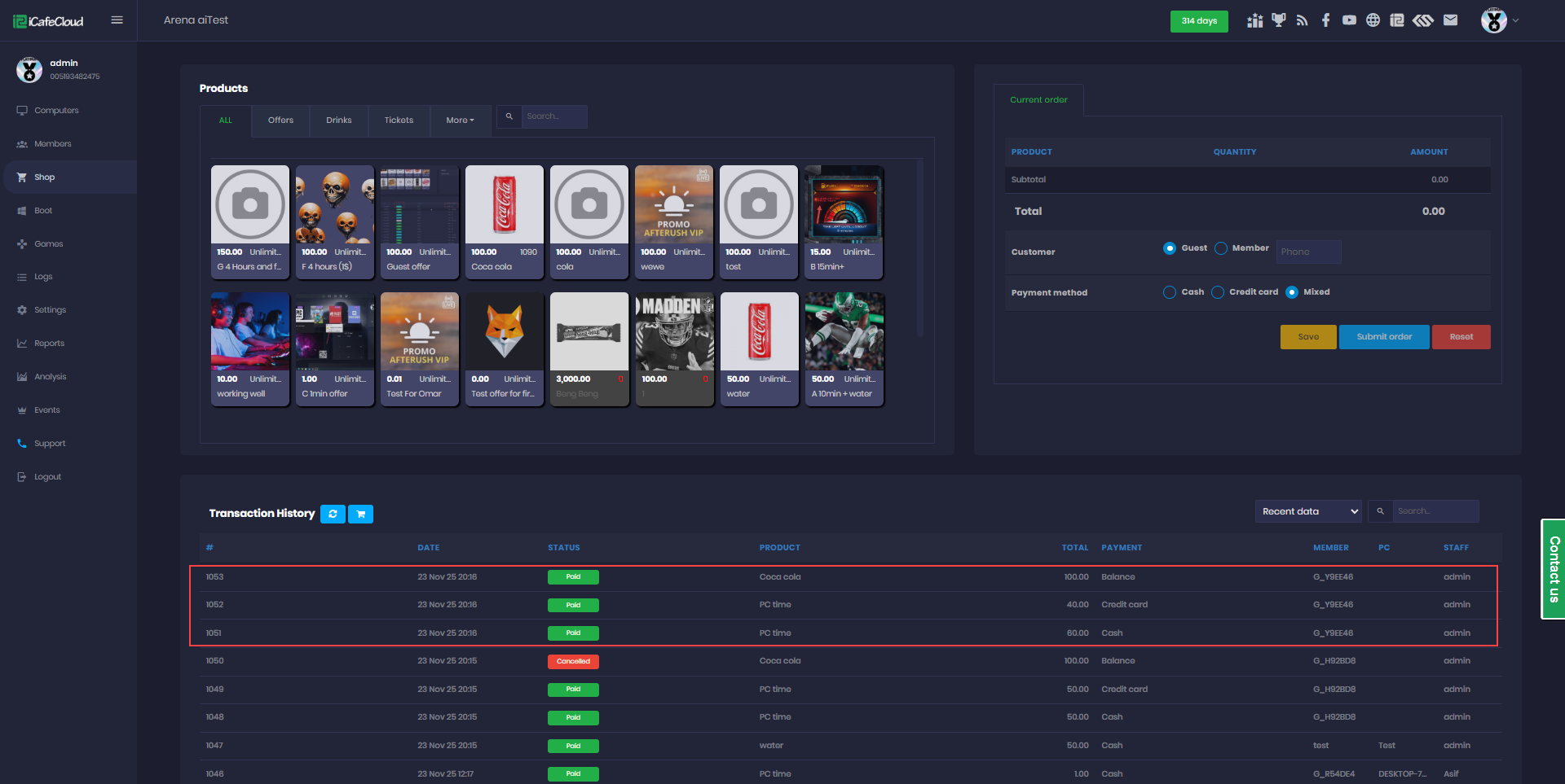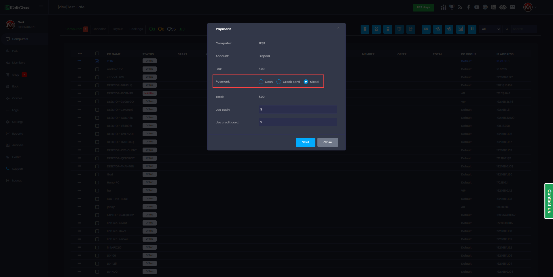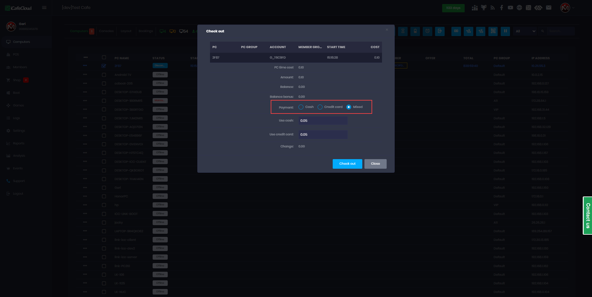 The following explains how to enable or disable specific payment methods for your center. iCafeCloud supports multiple payment options such as cash, credit card, balance, order by cash at client and mixed payments and you can customize which methods are available based on your needs.