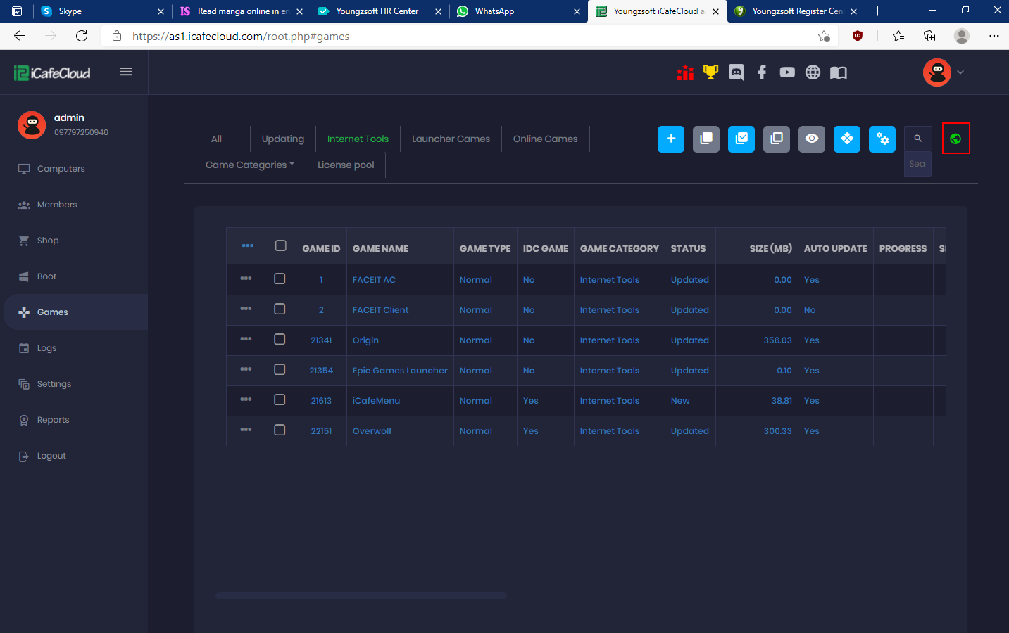 - Login to the iCafeCloud panel using the license, username and password.