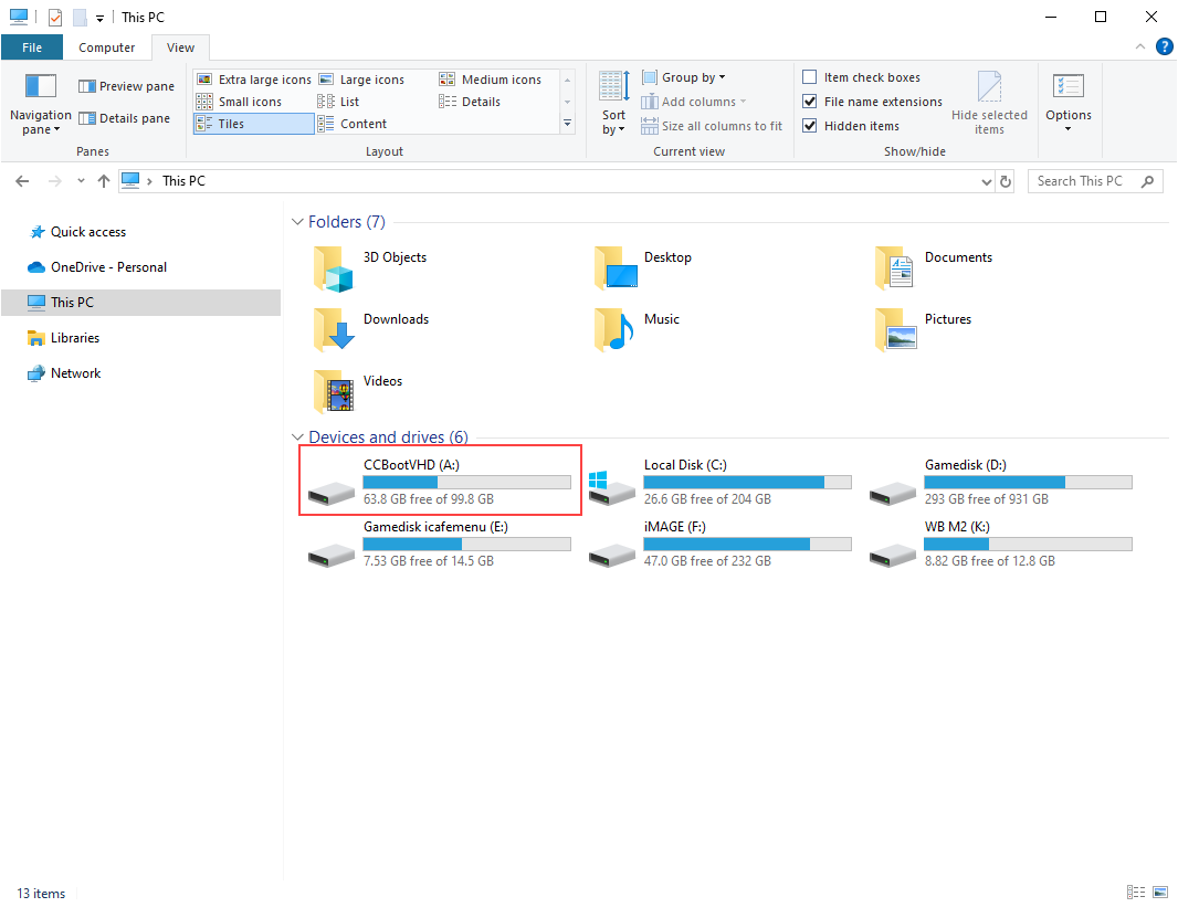 - To verify that the image is mounted successfully, check Disk Management. Images mounted from CCBoot usually appear as A: or B: drives.(Figure 2)