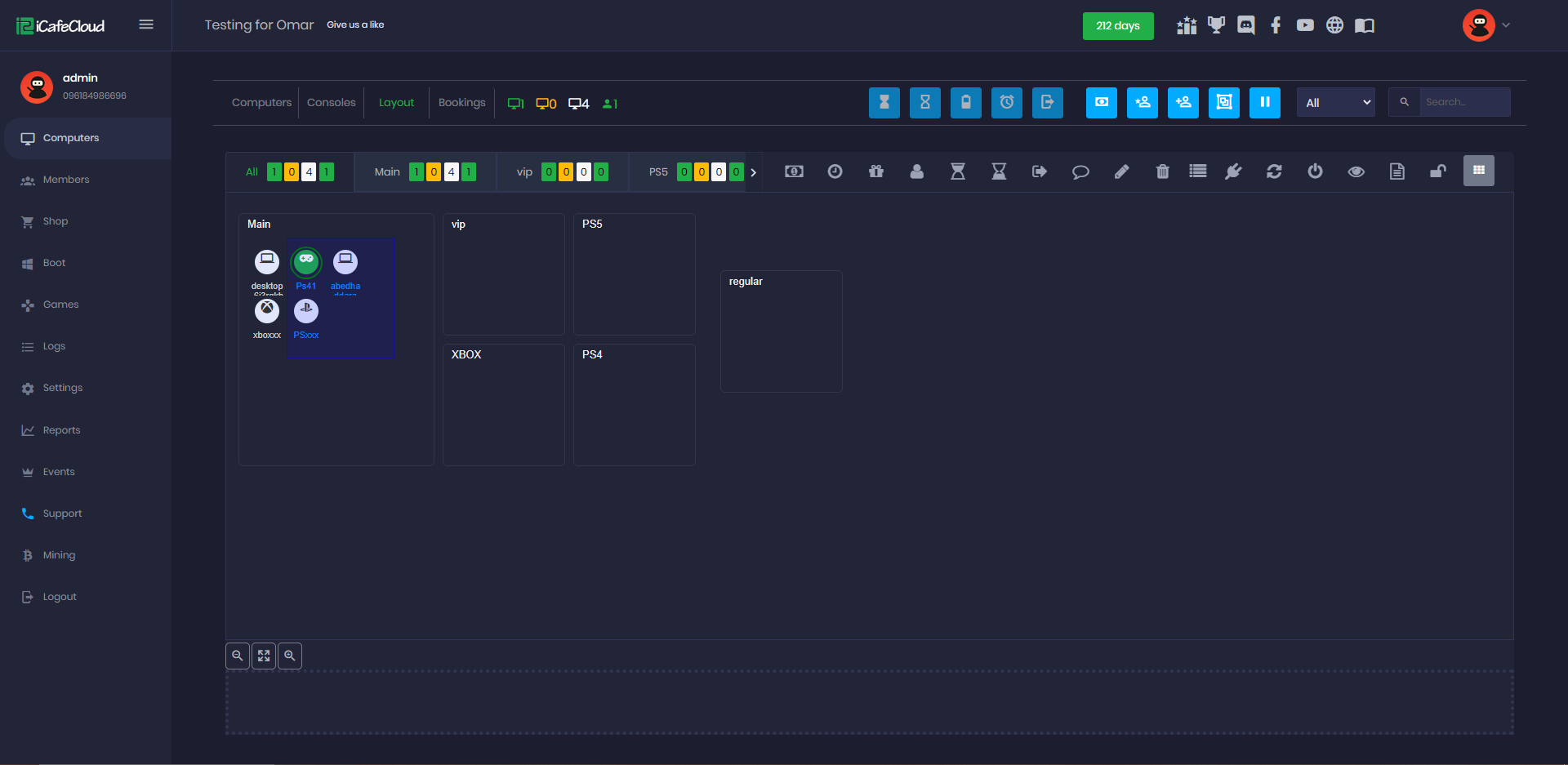 The graphic view layout allows you to set the order of the PCs as they are placed in the cafe. So when a customer does not know the number of PCs, he can just tell the cashier where the PCs are placed. The cashier can find a few free PCs that are close to them.