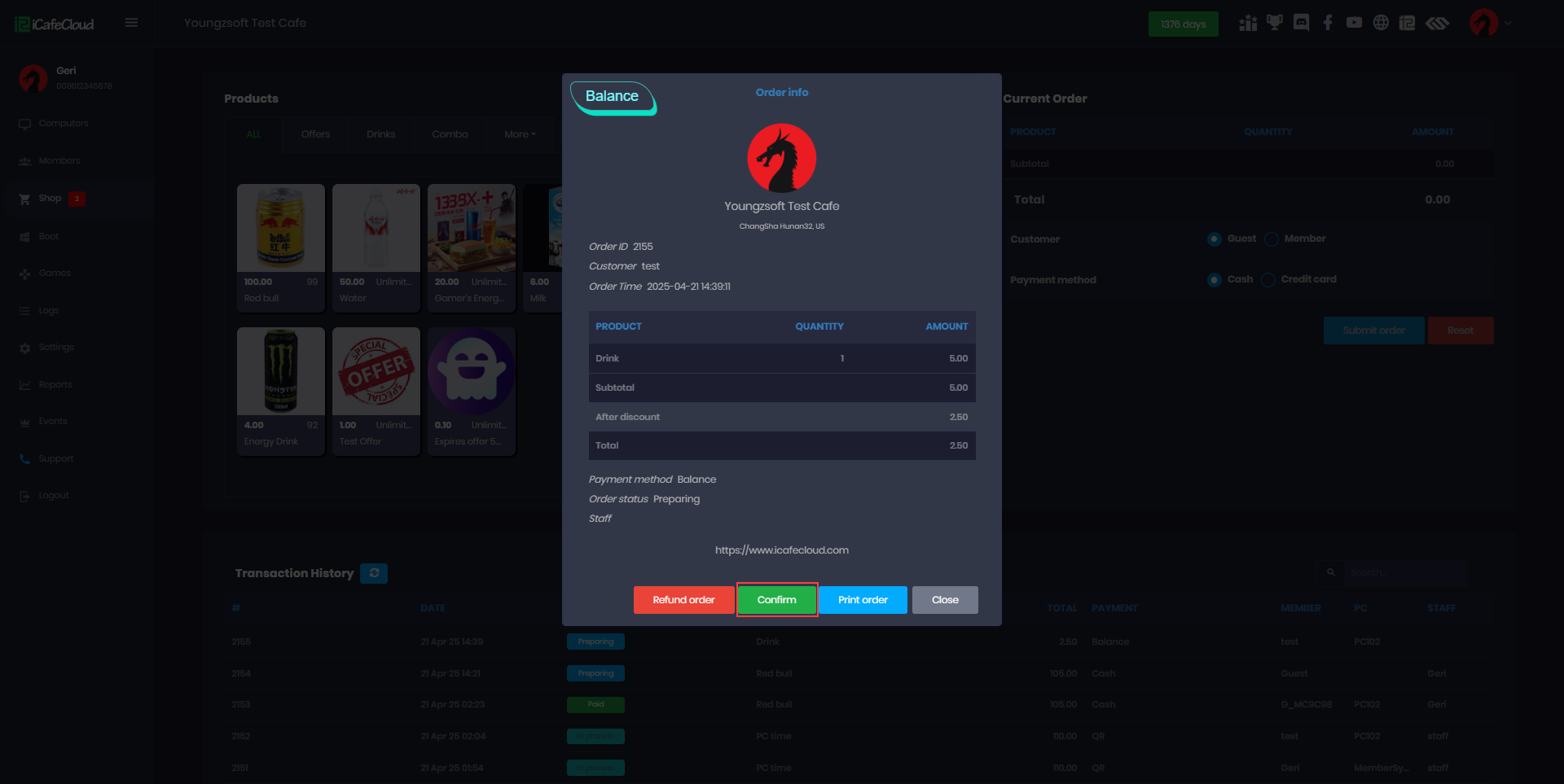- Preparing an order will automatically deduct the balance from the account that placed the order, but it only needs confirmation when the order is ready to deliver. At that point, the status will change from Preparing to Paid. (Figure 8)