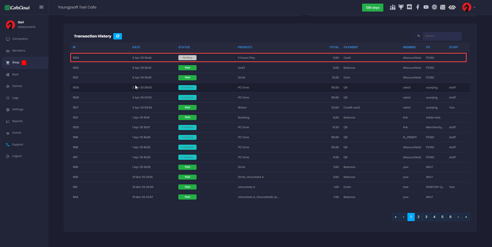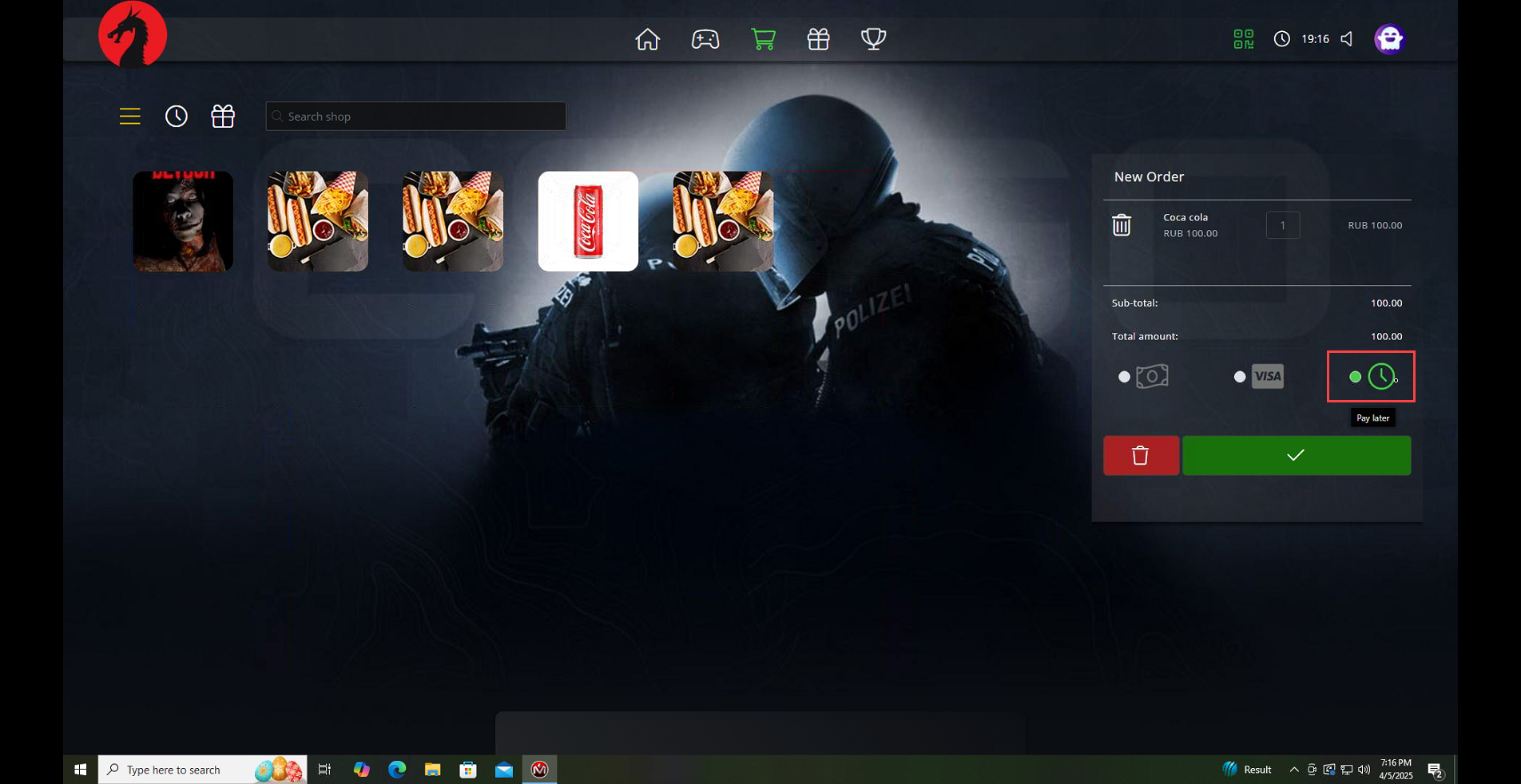 - Only Postpaid sessions allow the option to "Pay Later". A notification sound will play on the admin panel, and the order will appear as Pending, the order must be confirmed manually but the amount will be automatically calculated and charged at session checkout.(Figure 7)