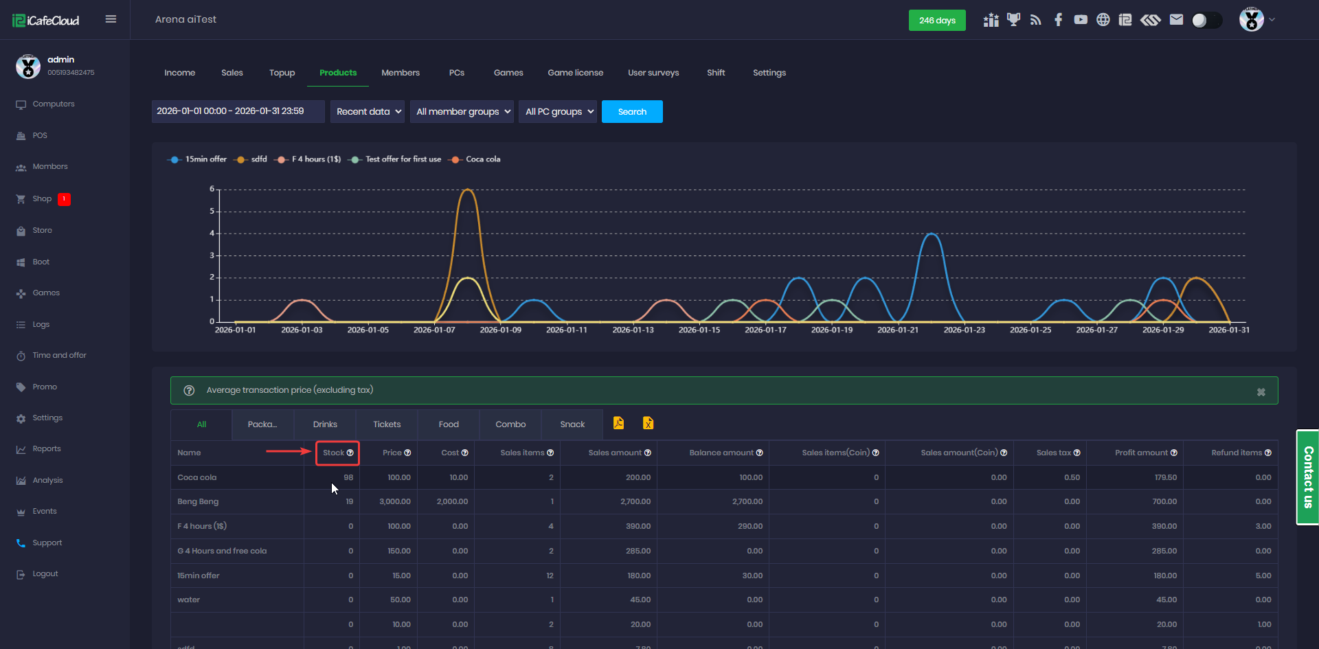 - At the products reports you will find details of product: