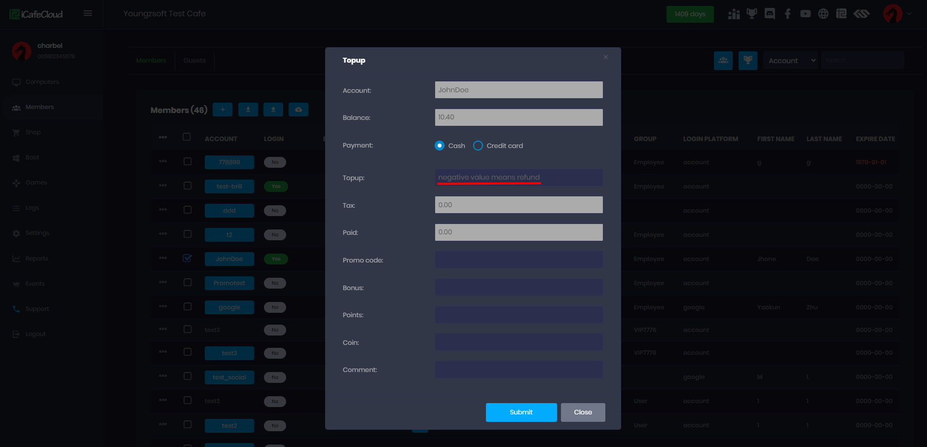 refund, member, balance, topup, negative, revoke