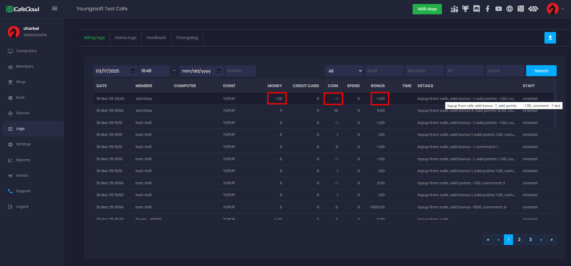 - You can reduce balance, points, bonuses, and coins by right-clicking on the member and selecting "Refund Balance." (Figure 1).
