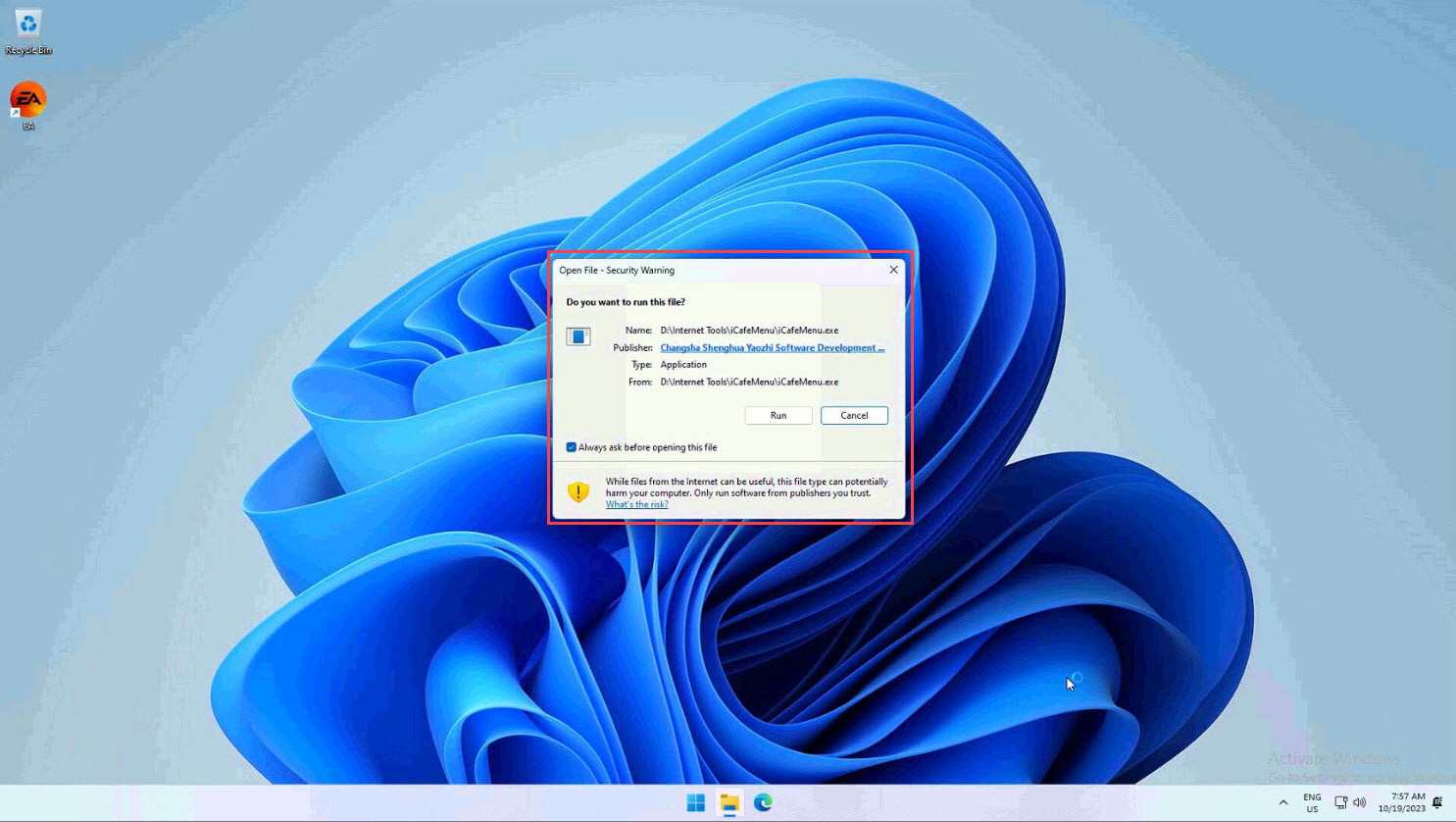 In case you get a warning notification when run or install icafemenu to remove it follow the steps below.[Figure 1]
