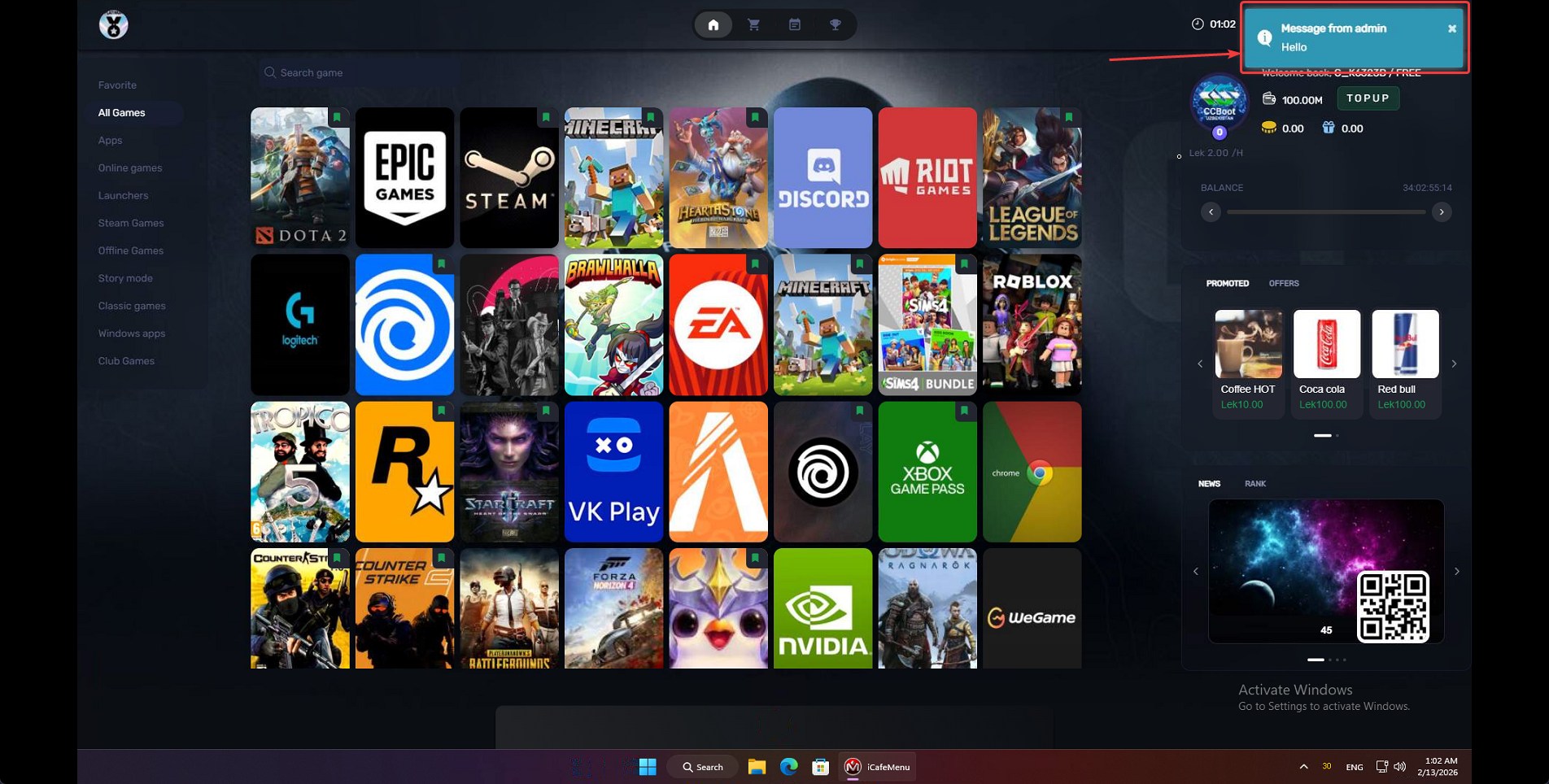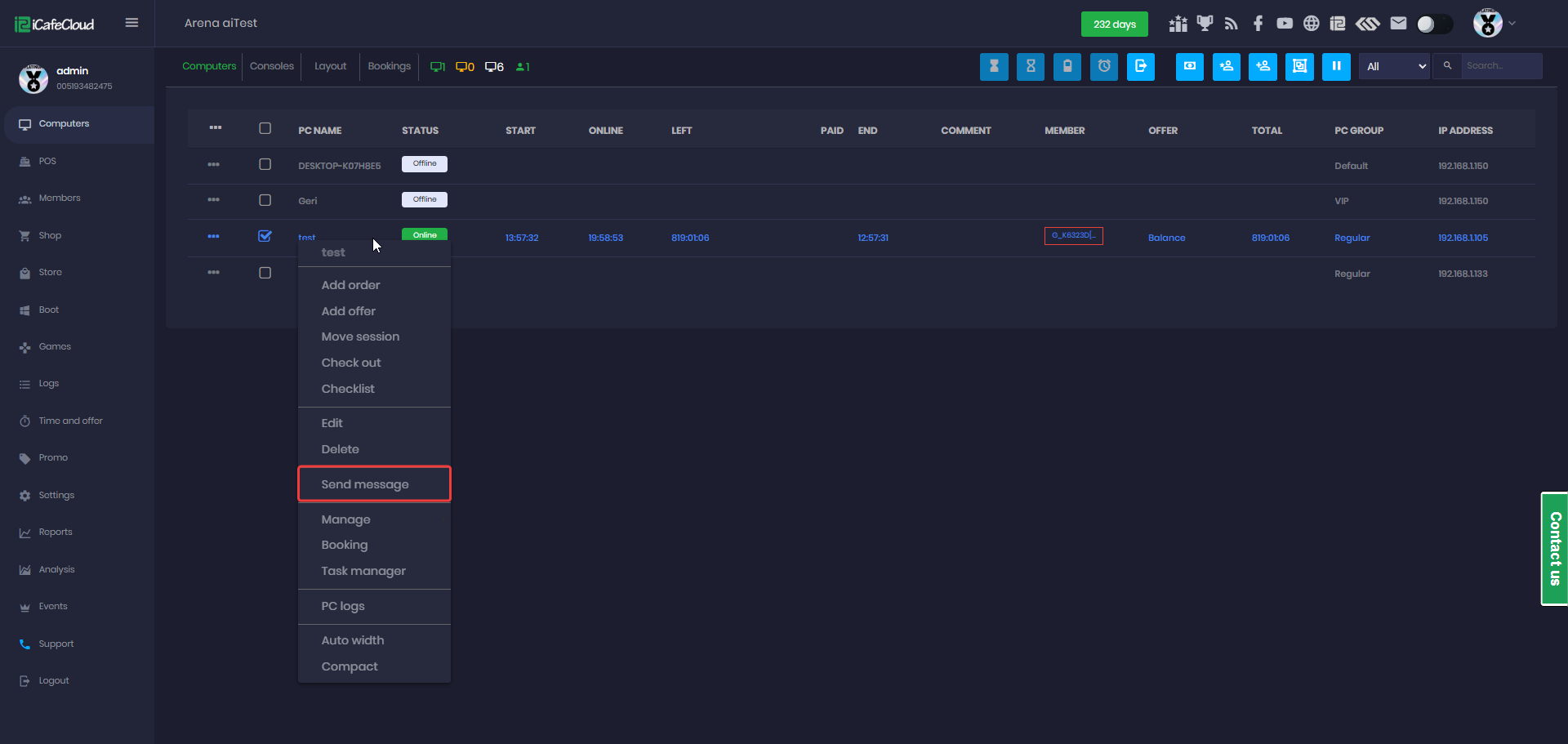 The following allows sending messages from the cloud panel to the client's PC. When the customer receives a message, he will hear a notification about it and the iCafeMenu interface will be inactive until he doesn't hide it.