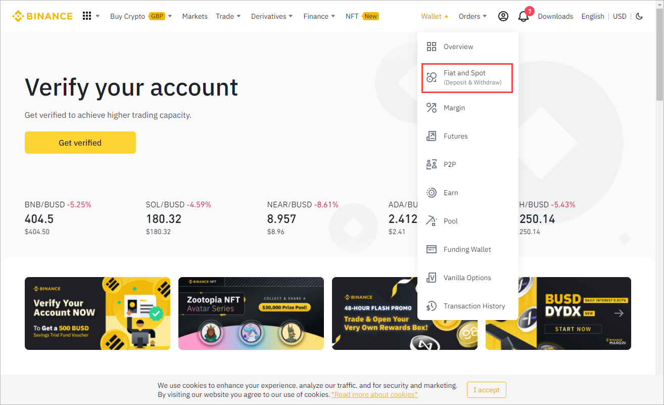 - Click the “Wallet” dropdown and select “Fiat and Spot” (Figure 4).