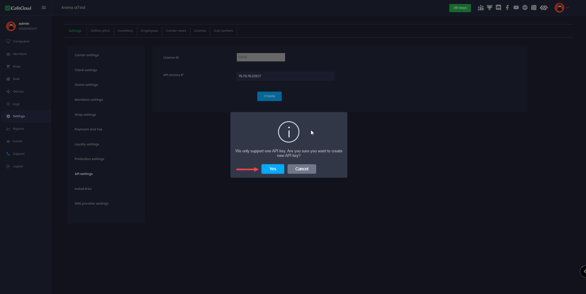 - When switching the iCafeCloud license between master and slave servers (EU3 to EU4), there is no need to update the API, as it remains unchanged. However, if you switch to a different server group ( EU3 to EU18), the API key must be recreated.