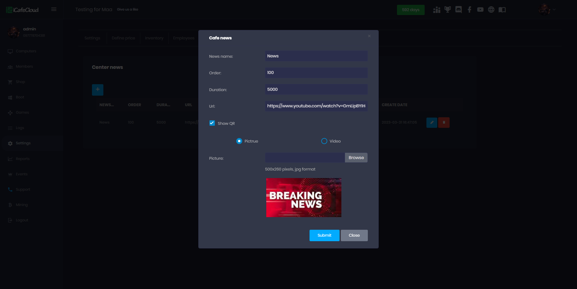 - Click the “Refresh” button on the iCafeCloud server application to apply changes to the client side, and after a reboot, you will be able to see the news.
