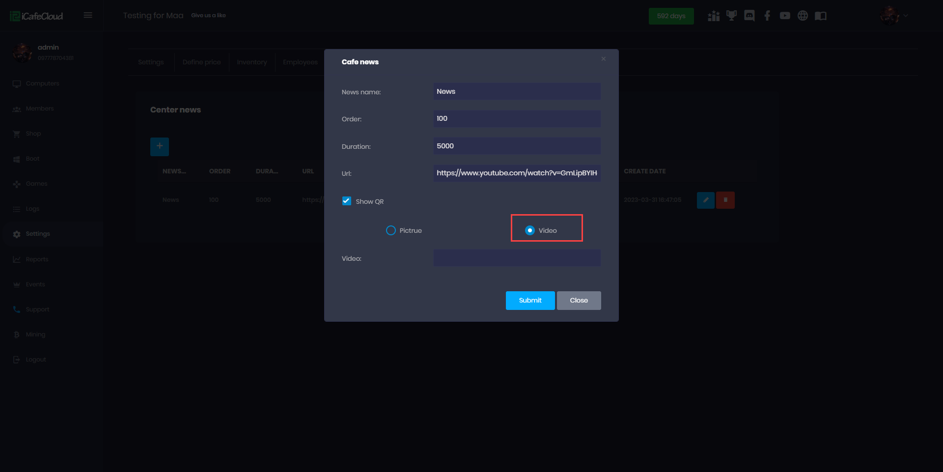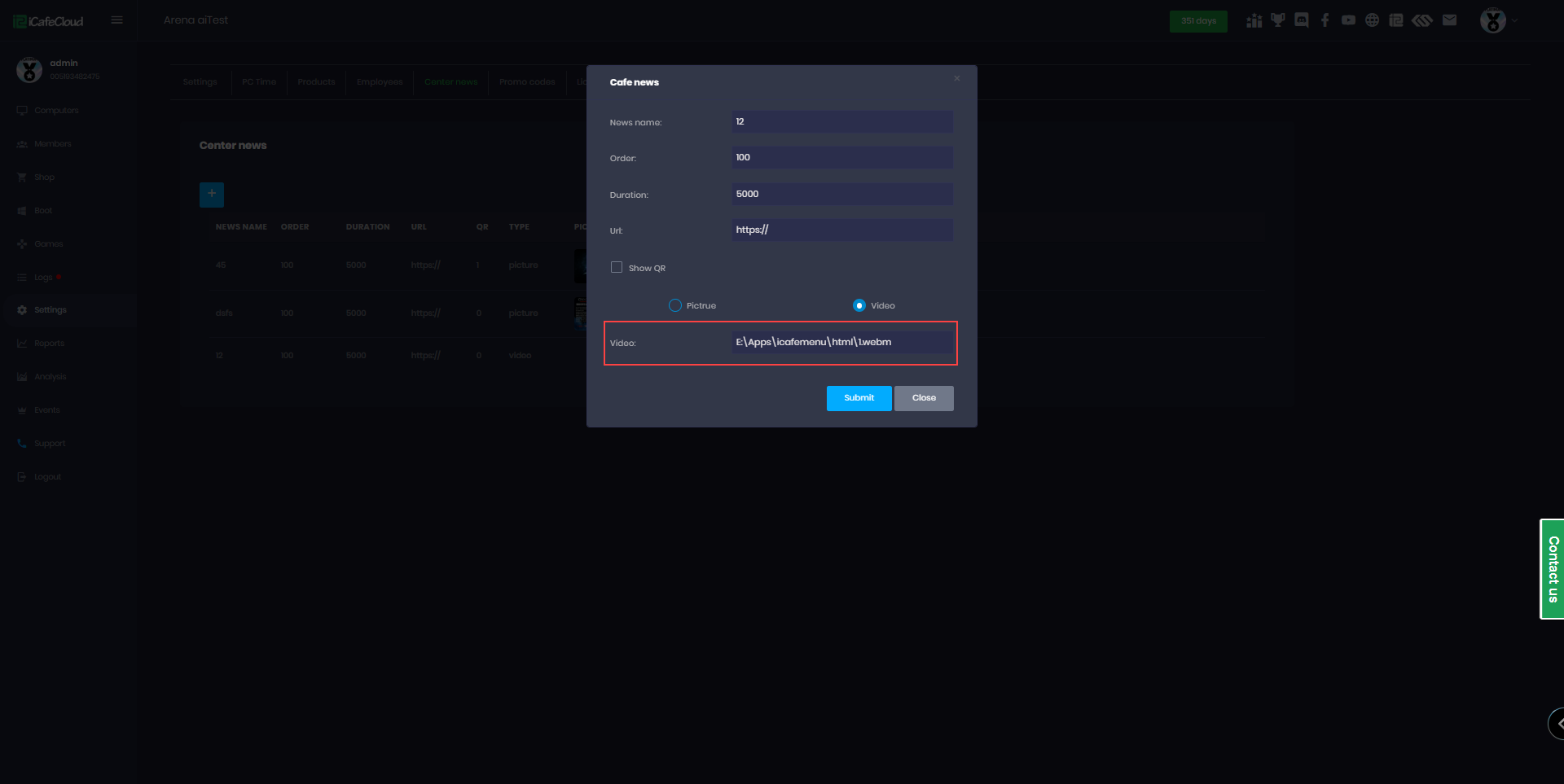 - Copy the video file to the apps/icafemenu/html folder and rename it with a generic name like "1.webm" and add the full path on Cafe news Video.(Figure 4)