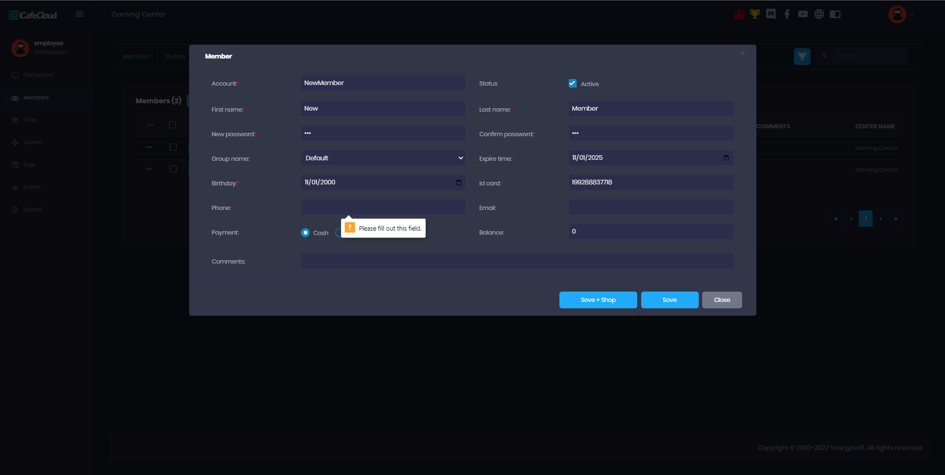 - If the administrator sets the phone number field as compulsory (required), users must enter their phone number, which must be unique. The system will not allow duplicate phone numbers when creating a member account. (Figure 2).