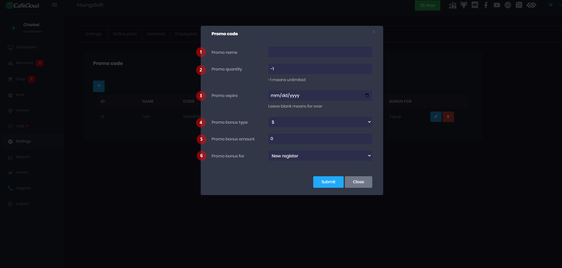 - iCafeCloud introduced promo codes to help businesses attract more customers and increase engagement by offering discounts or special deals through the iCafeCloud system.