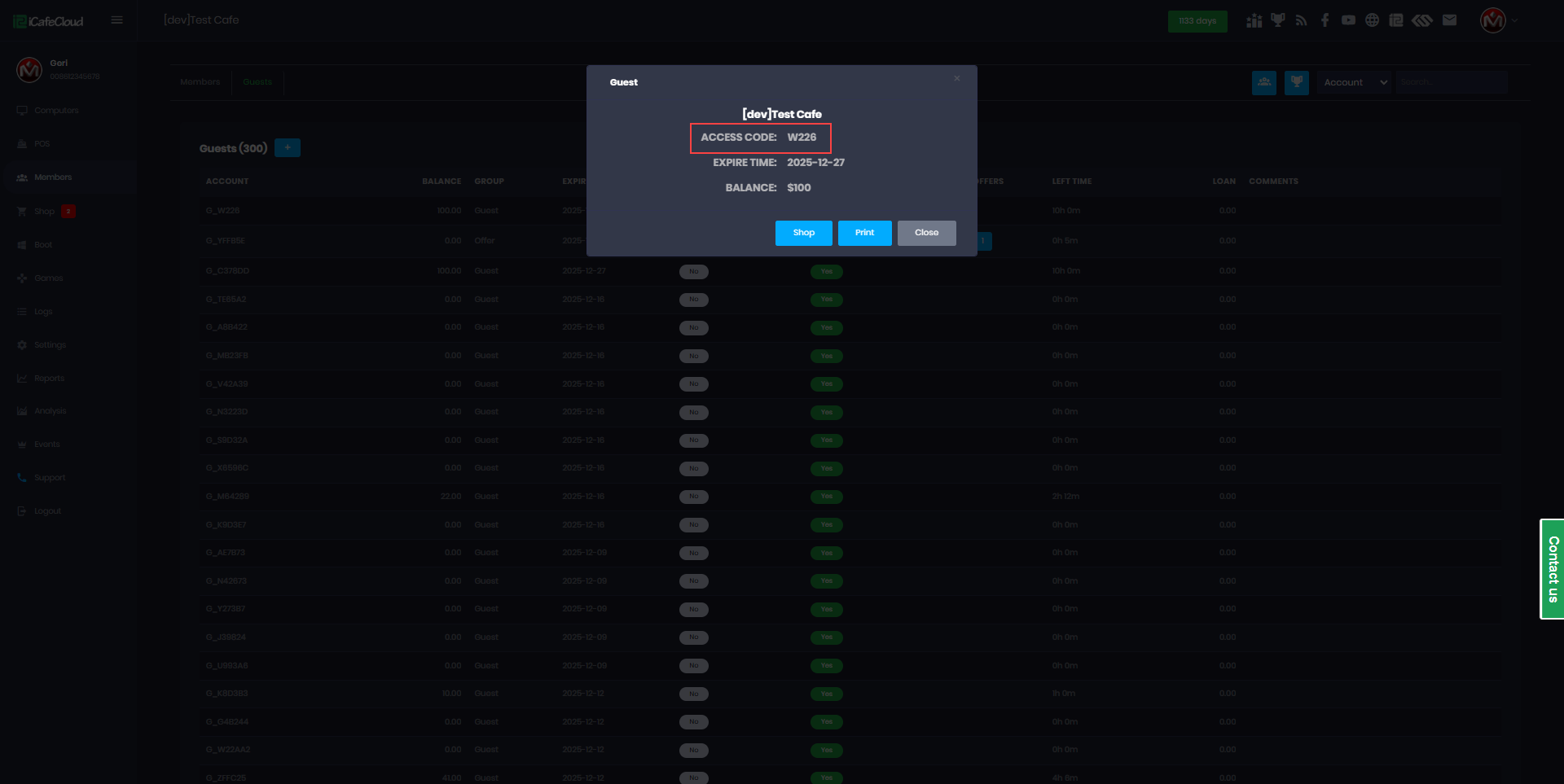 - On the Members page, go to Guests, create a new guest account, and on the print screen you will receive the access code (Figure 2).