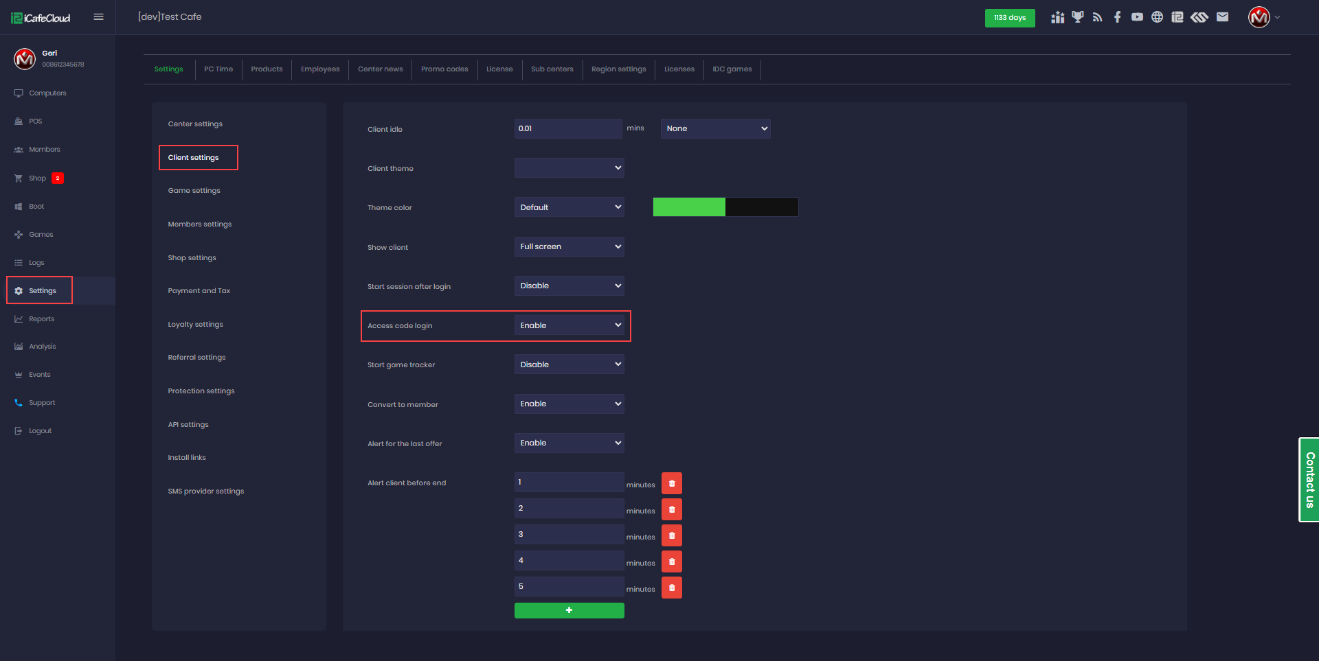 - Navigate to the Settings page, go to Client Settings, and enable Access Code Login (Figure 1).
