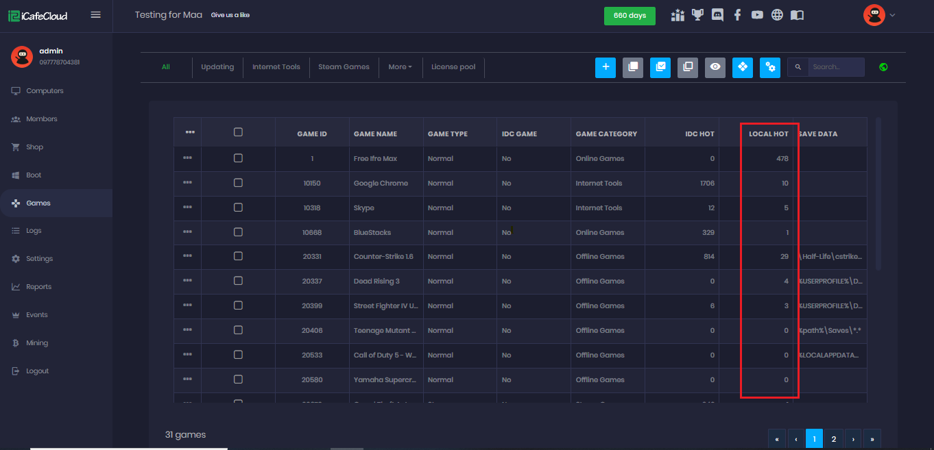 - If you restart the iCafeCloud Server by clicking Stop and Start, you need to refresh the Control Panel (CP) to see the updated status, or click the “Refresh” button on the console.(Figure 8)