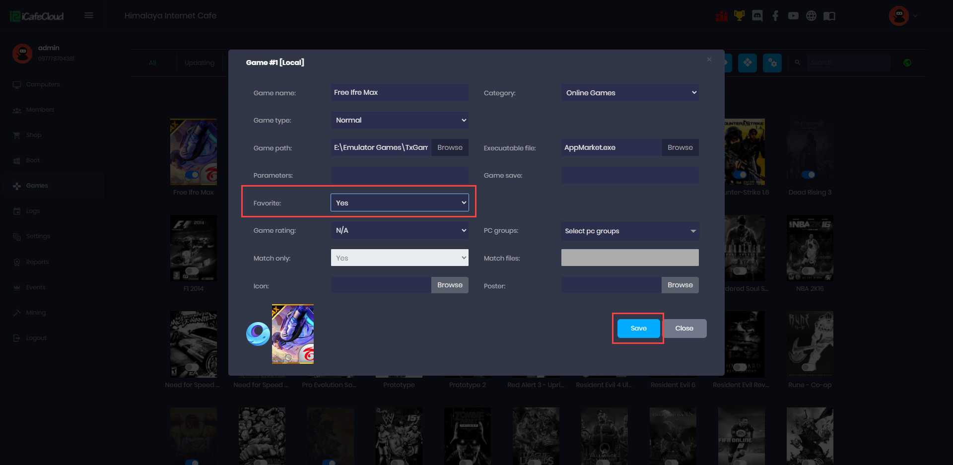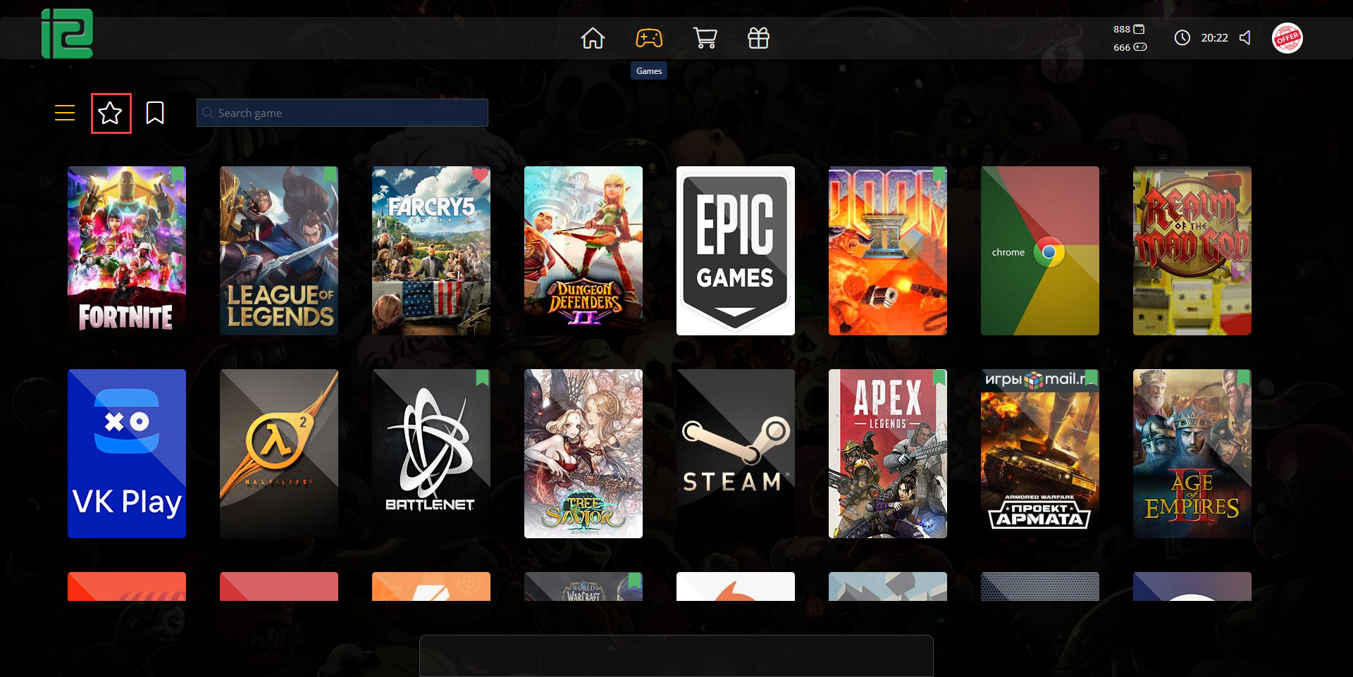 - After the iCafeCloud server is refreshed and the client PC is ON, the user's favorite game should appear on the home screen alongside the most recently played games.