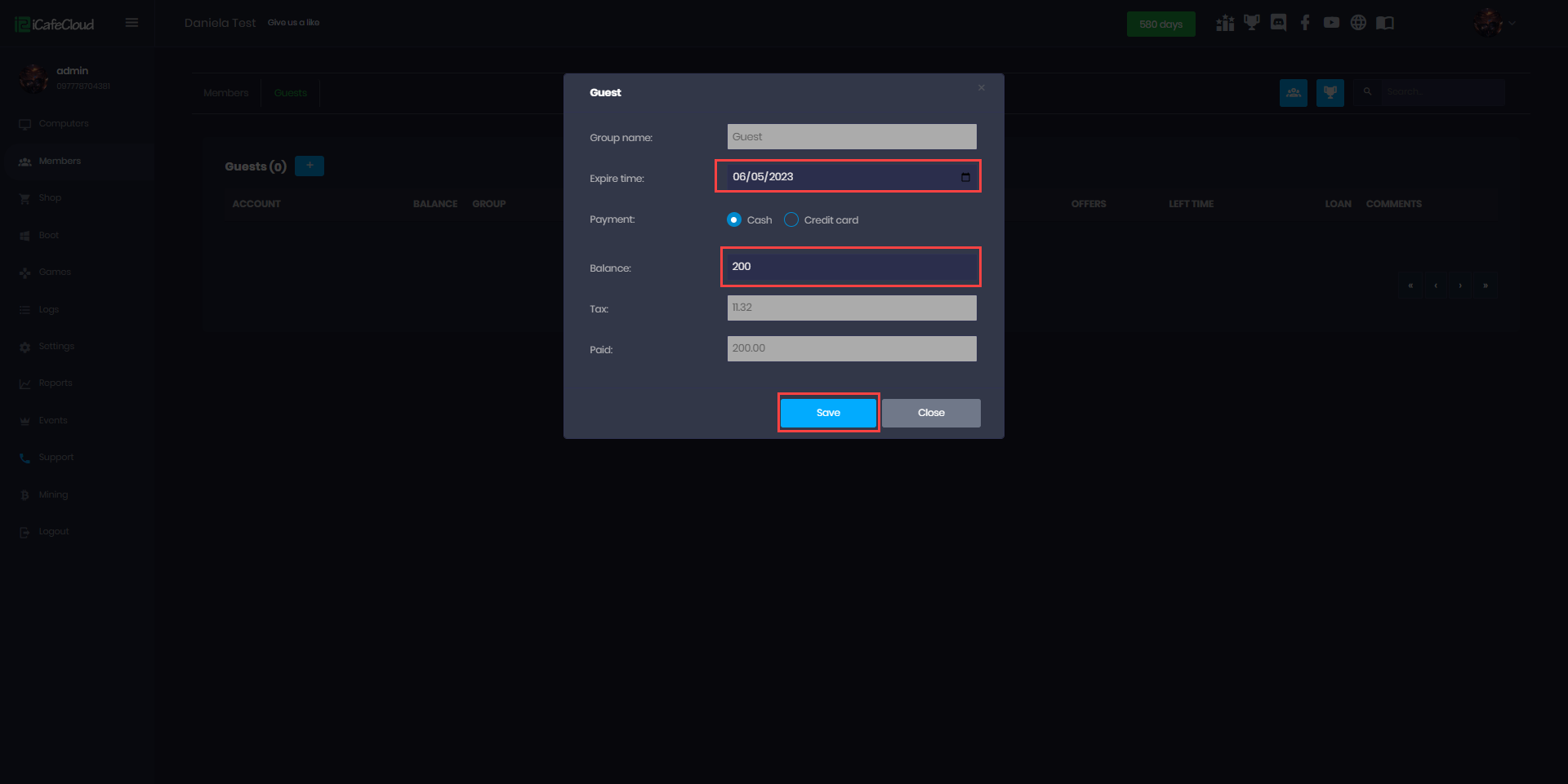 - Now, on the “Guest” modal, set the “Expire Time” and the “Balance” amount the account will have, then click the “Submit” button (Figure 2).