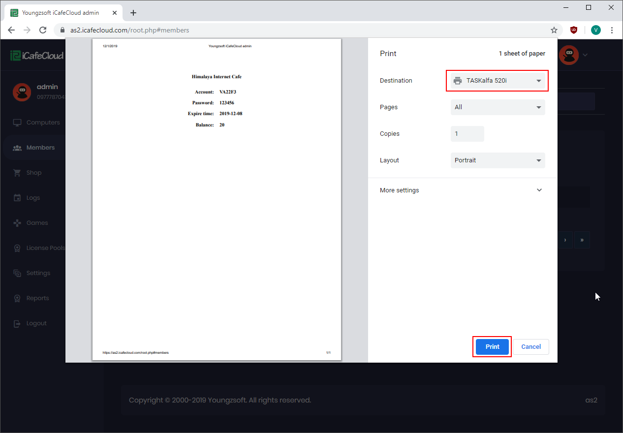 - To give the account to the user you can print it, to print the guest account details, click the account link and then click on the “Print” button on the “Guest” modal (Figure 4).