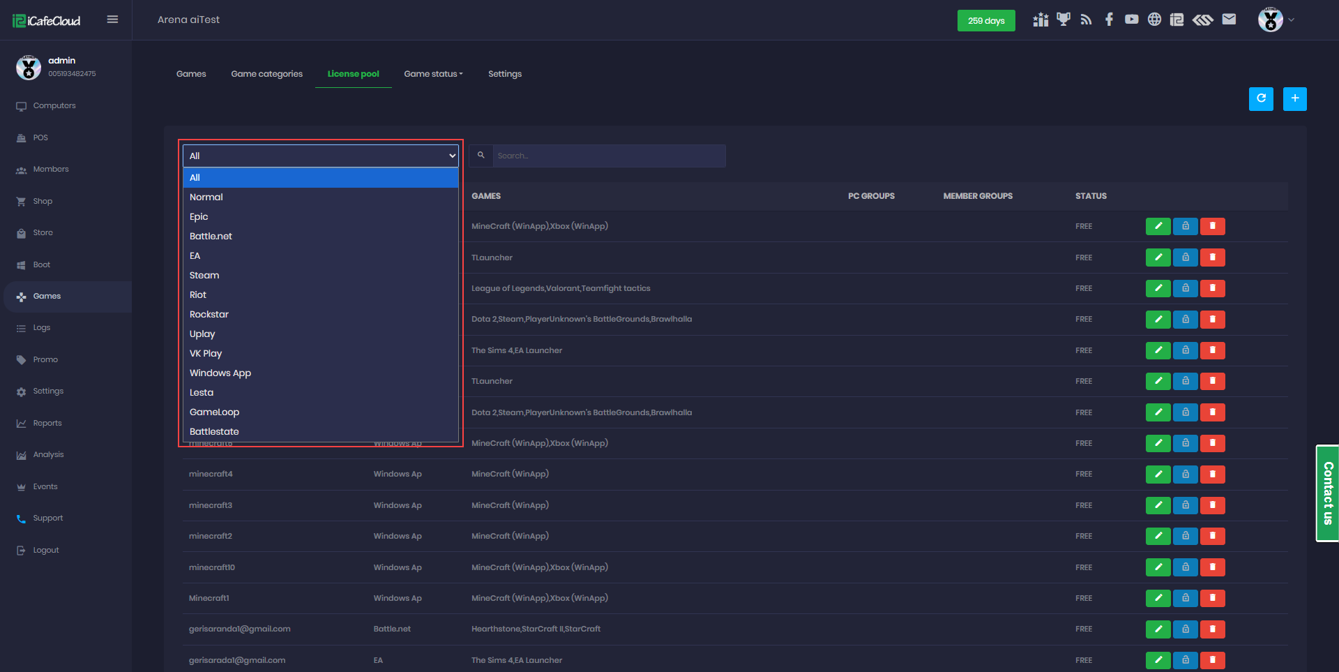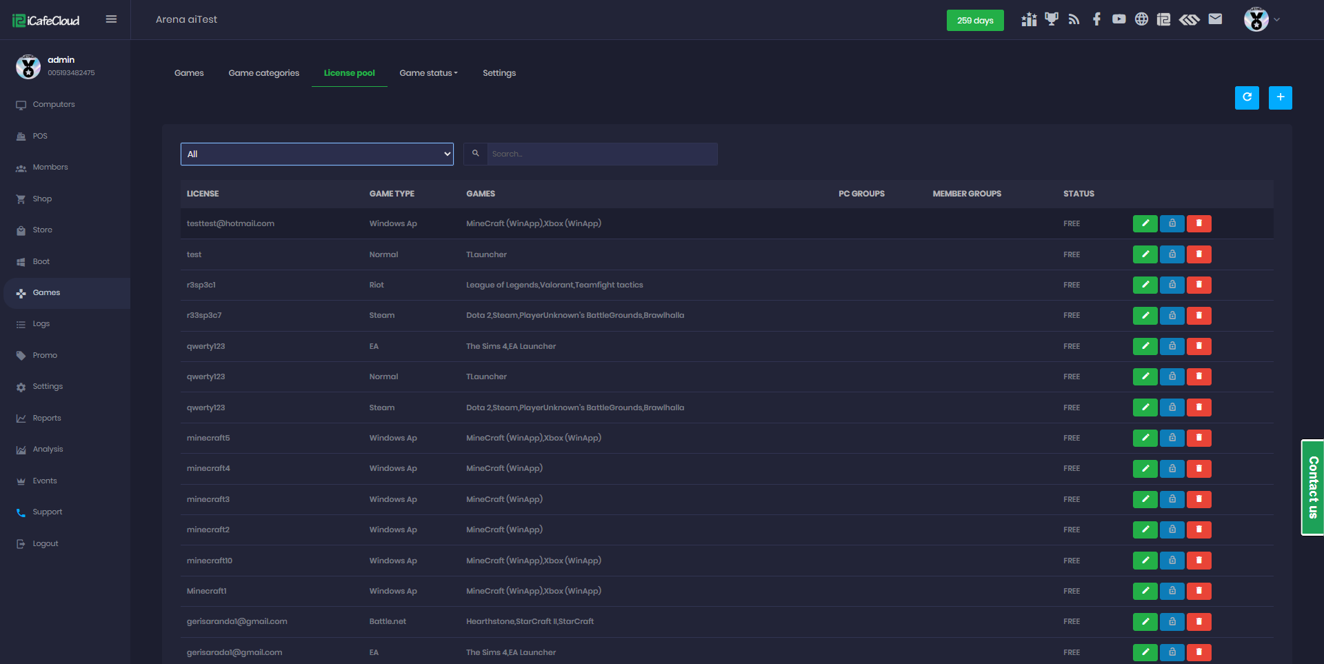 - Within the license pool, you can assign one license per account for each game type, and that license can be shared across multiple games of the same type.