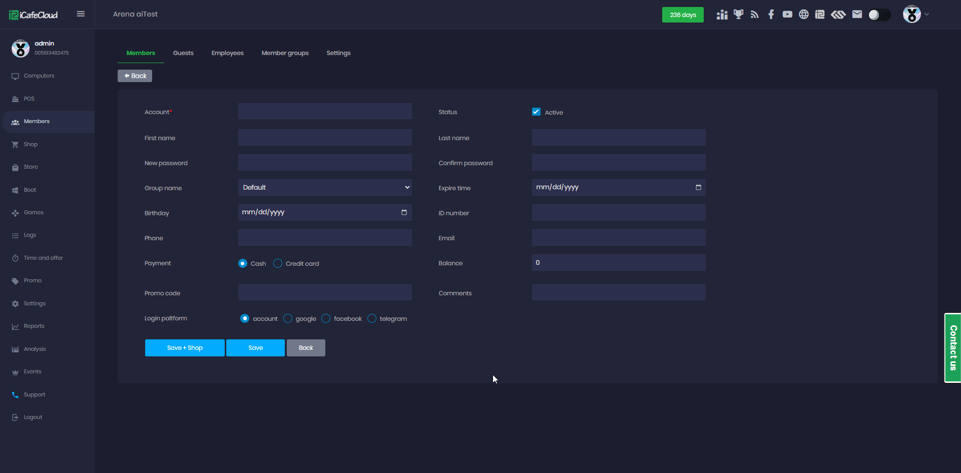 The following explains how to create and add new member accounts. iCafeCloud supports an unlimited number of members.