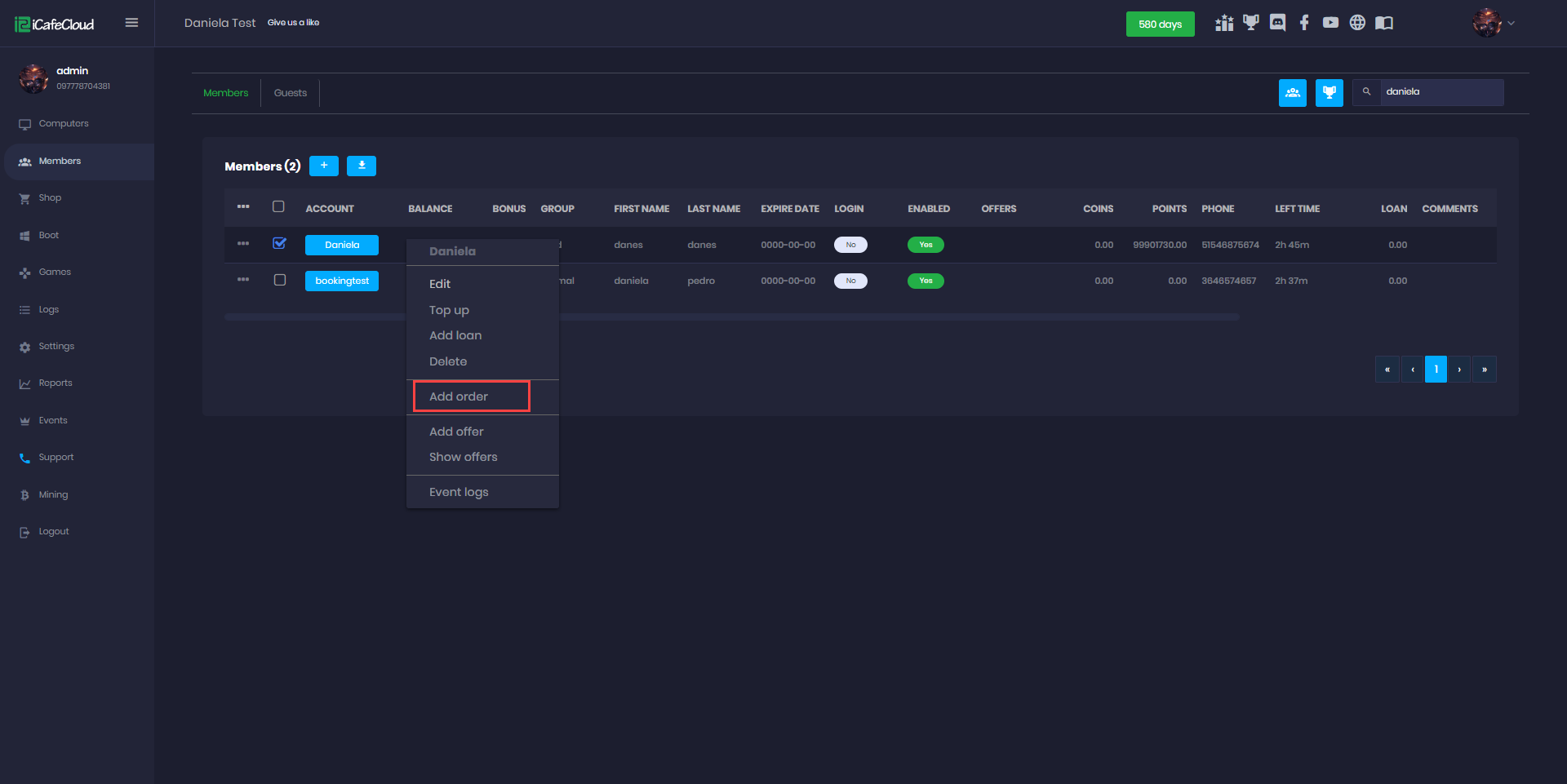 - Go to the members page and right click on a member and click on “Add order” (Figure 1).