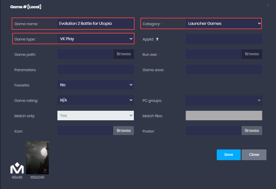 - In the “Add Game” modal, write the name of the game, Category as “Launcher Games” and choose the “Game type” as “VK play” (Figure 4).