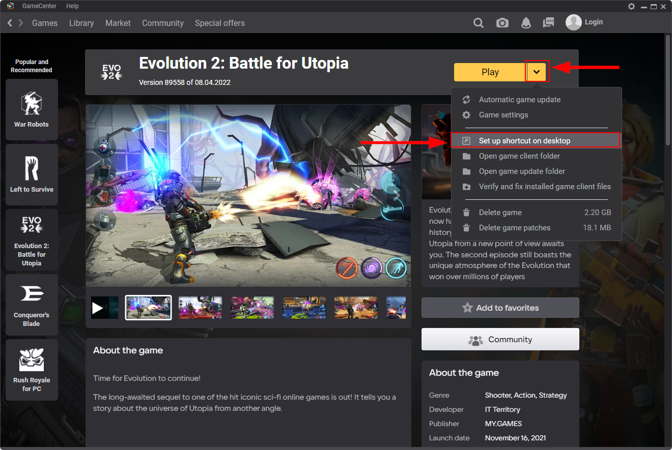 - If you don't have the shortcut on the desktop, then you can create a new shortcut for the game from the GameCenter.