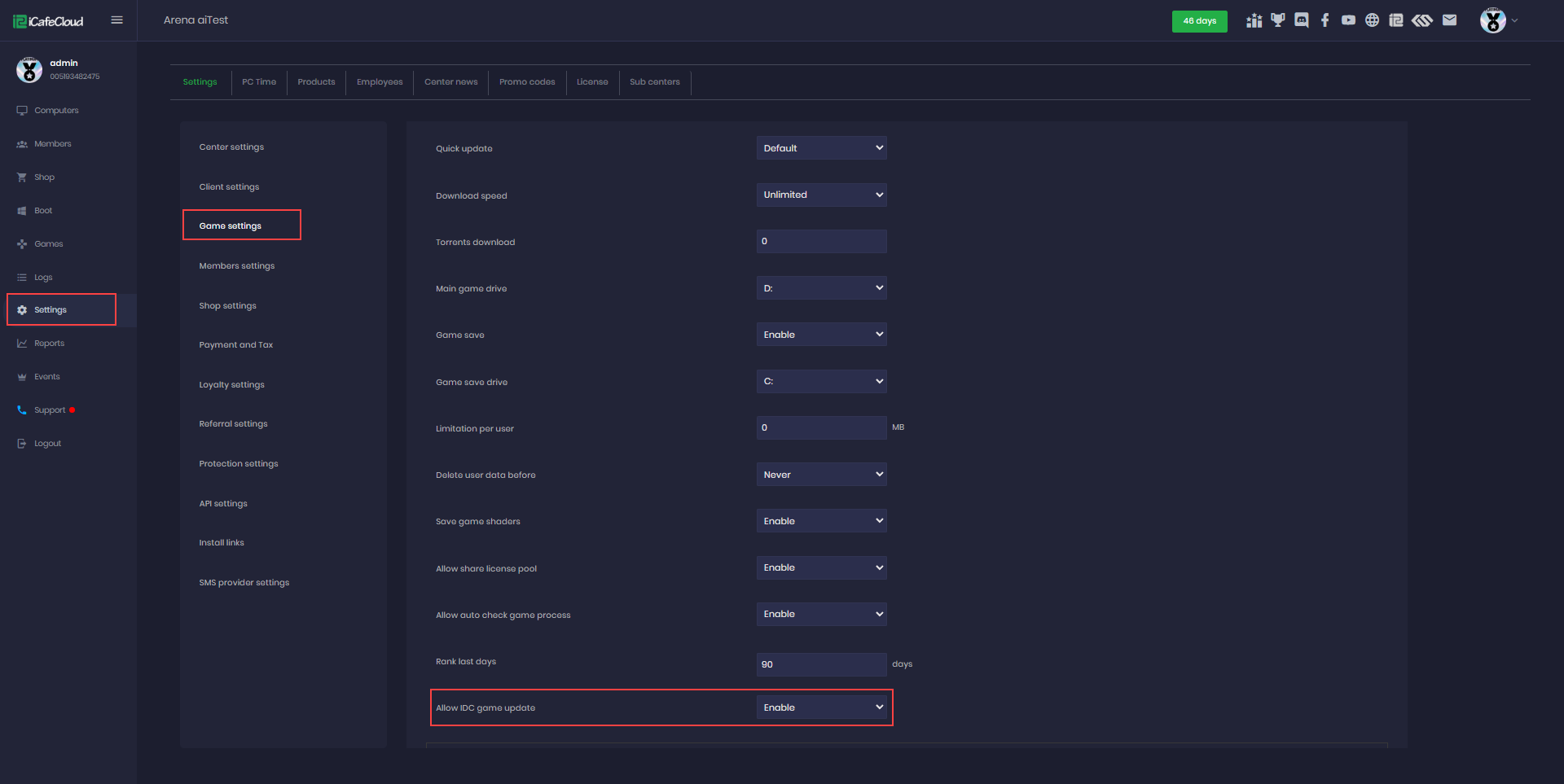 - Go to Settings - Game Settings, set Allow IDC Game Update to Enable, then click Save. (Figure 1)