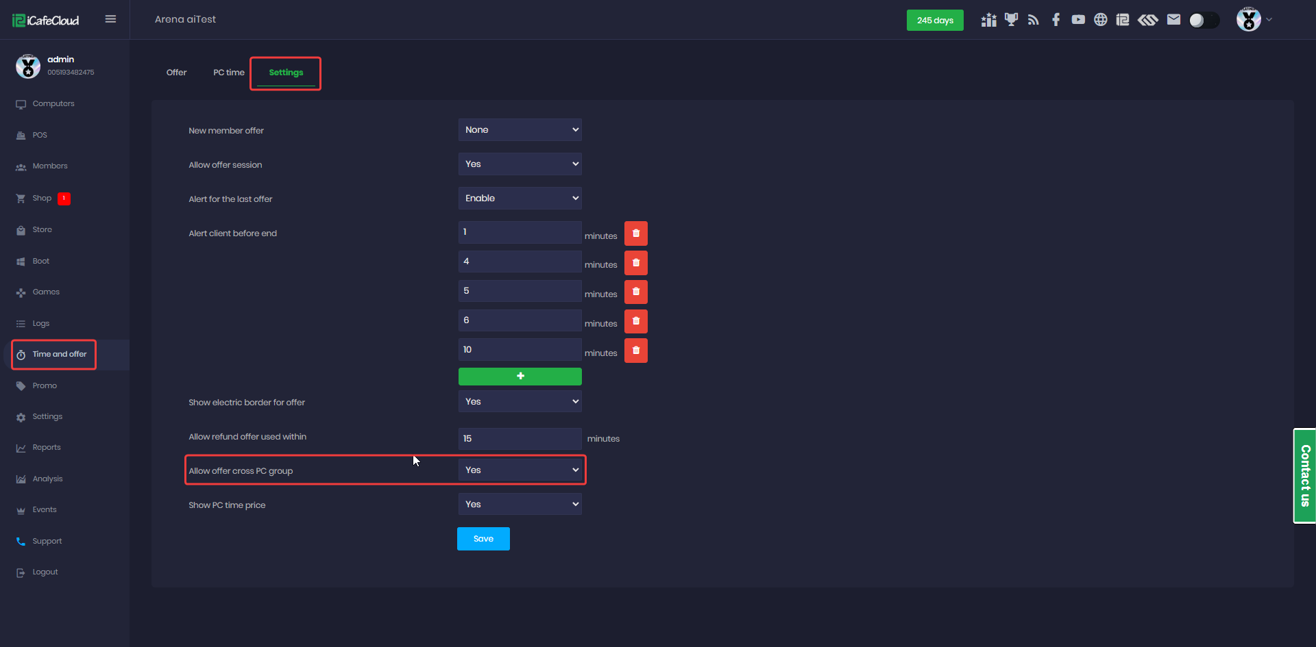 - Navigate to Time and offer → Settings.