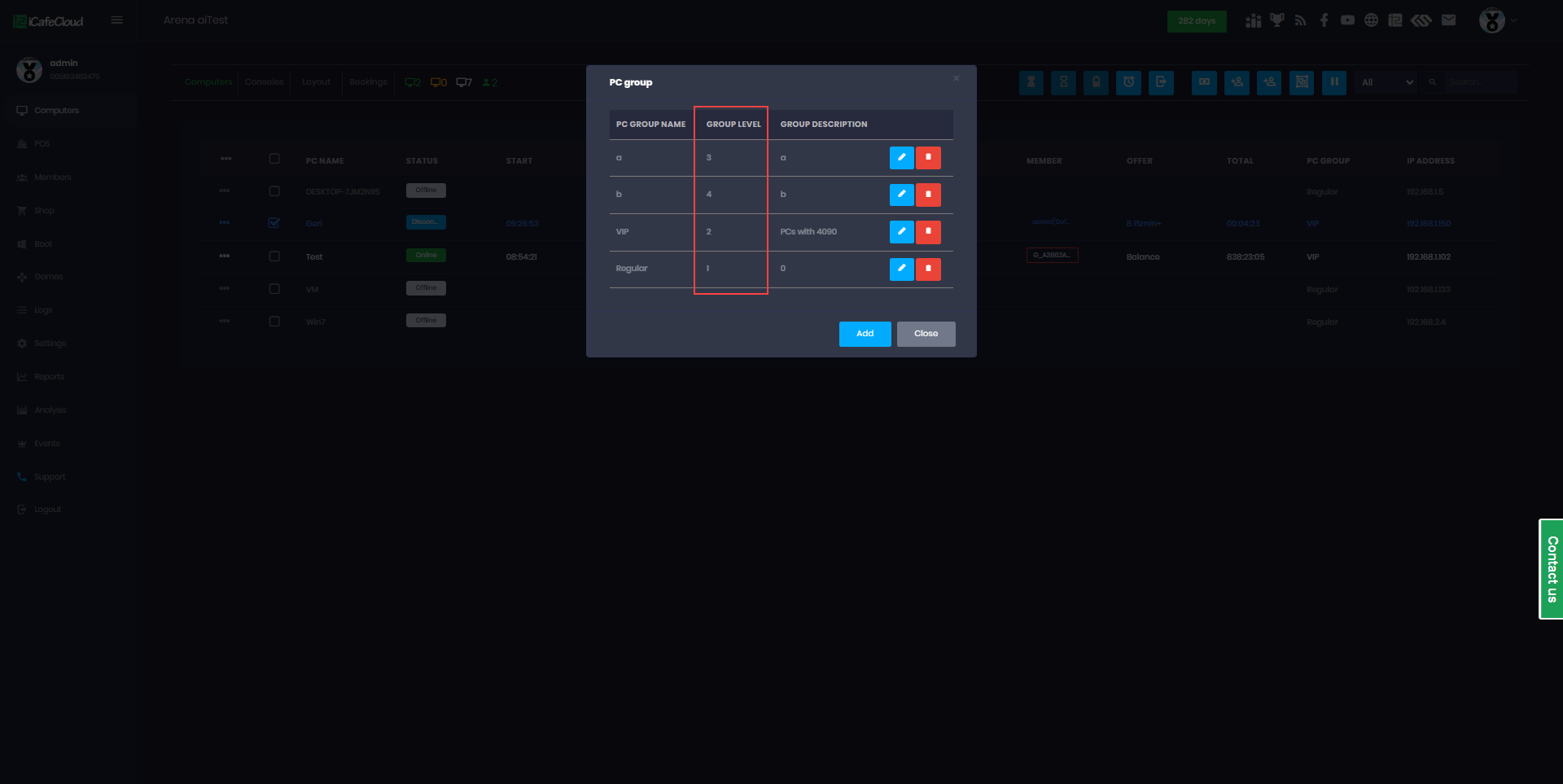 Group "VIP PCs" = Level 3 - With this configuration, an offer purchased for VIP PCs (Level 3) can also be used on Standard (Level 2) and Budget PCs (Level 1).