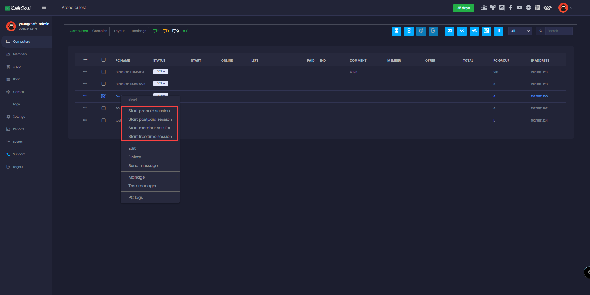 The following explains how to hide “Start Offer Session” from appearing in the Computer Panel when selecting PCs to start sessions.