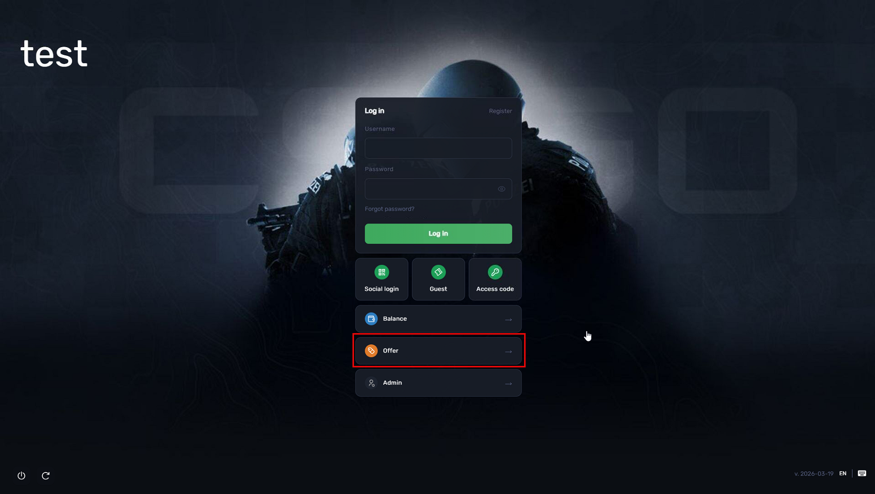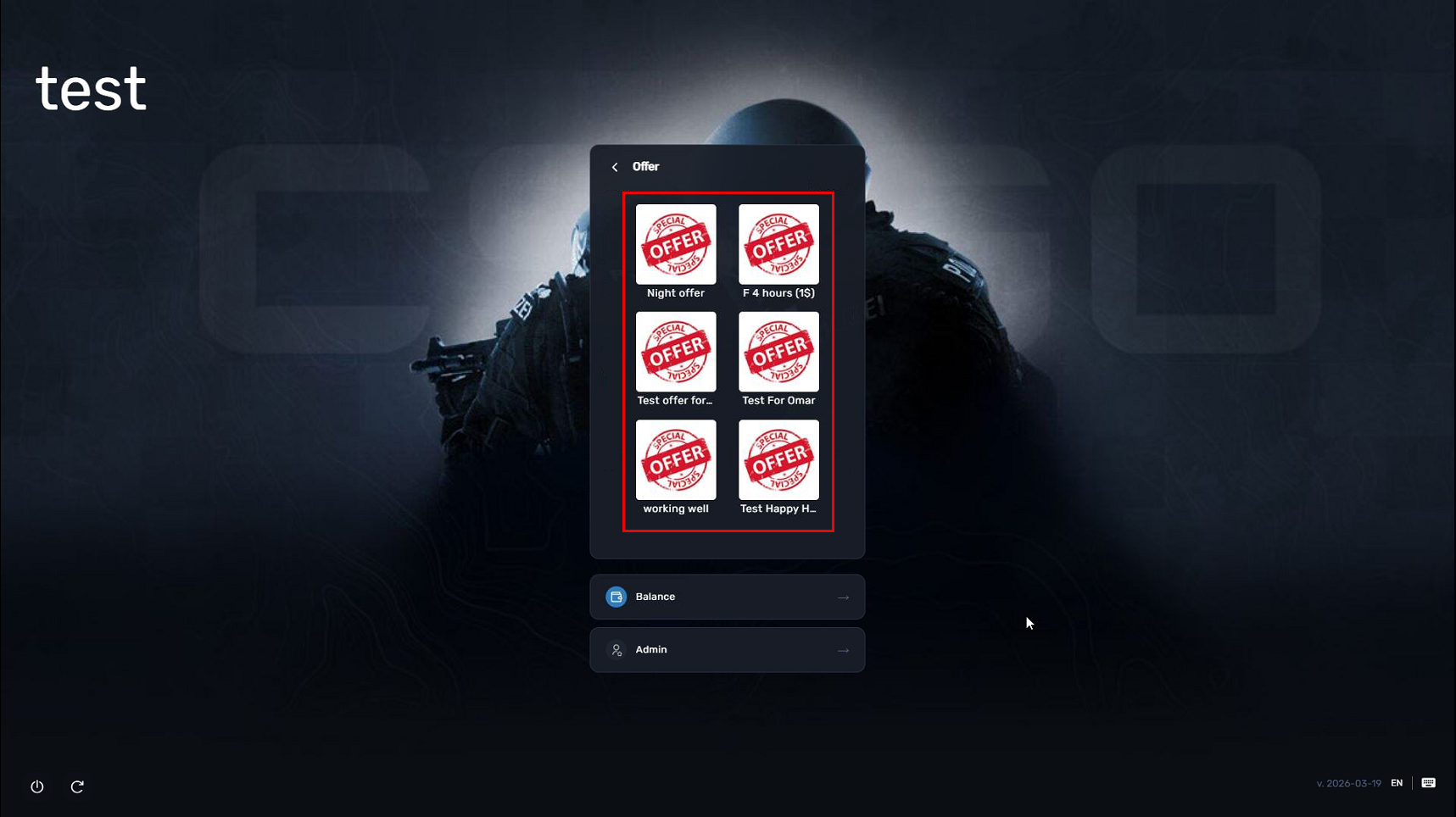 - On the client interface, a new “OFFERS” button will appear below the login details.(Figure 2)