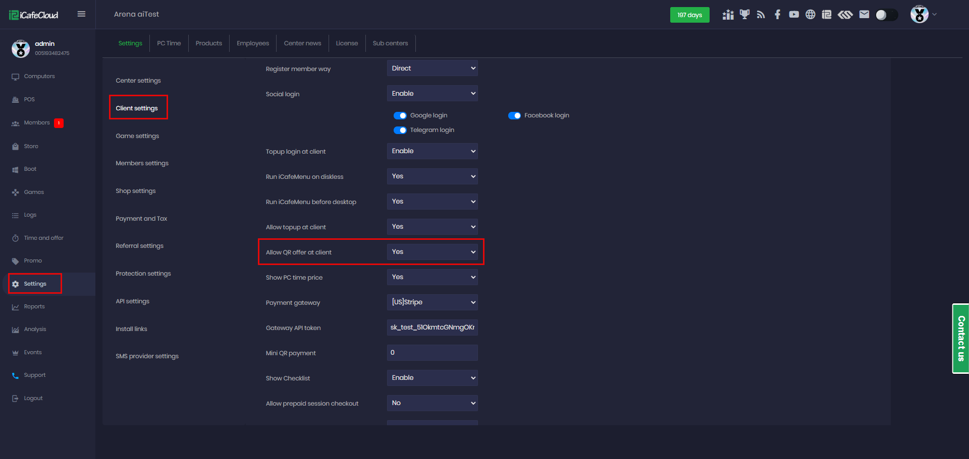 - Go to Settings - Client Settings, locate Allow QR Offer at Client, and change it to Yes to enable QR offer purchases on the client side. (Figure 1)