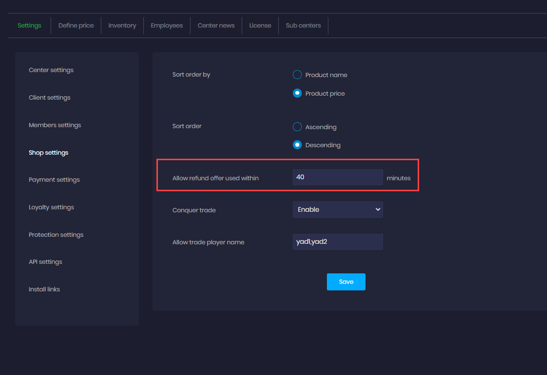 The admin can specify the offer to be refundable even after it has been used for a particular amount of time set (Figure 1).