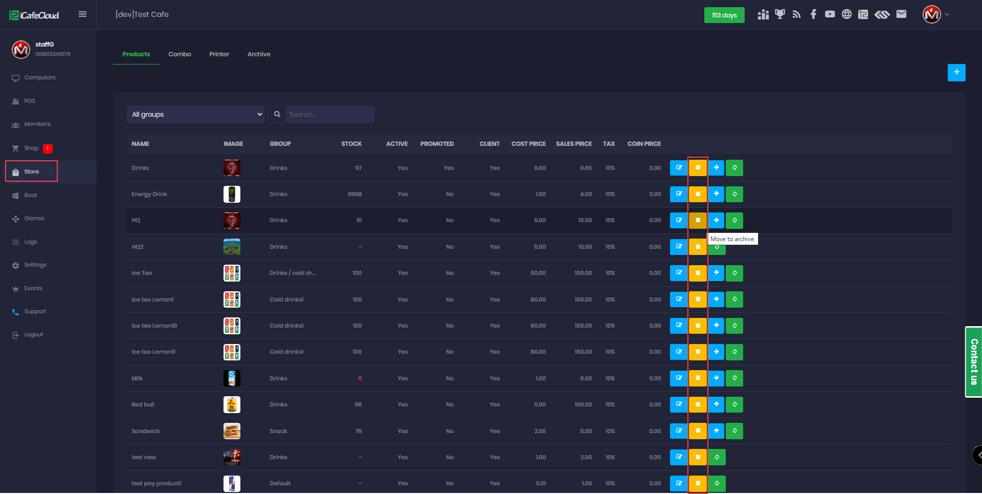 - Navigate to Store → Products, where each product has a yellow Move to Archive icon (Figure 1).