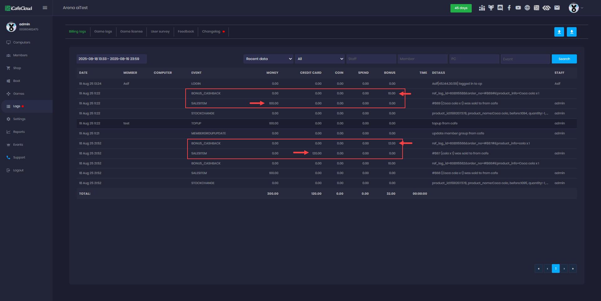 For example, if the price is $100, then $10 will be added as a bonus. - You can view cashback details in the logs.(Figure 3)