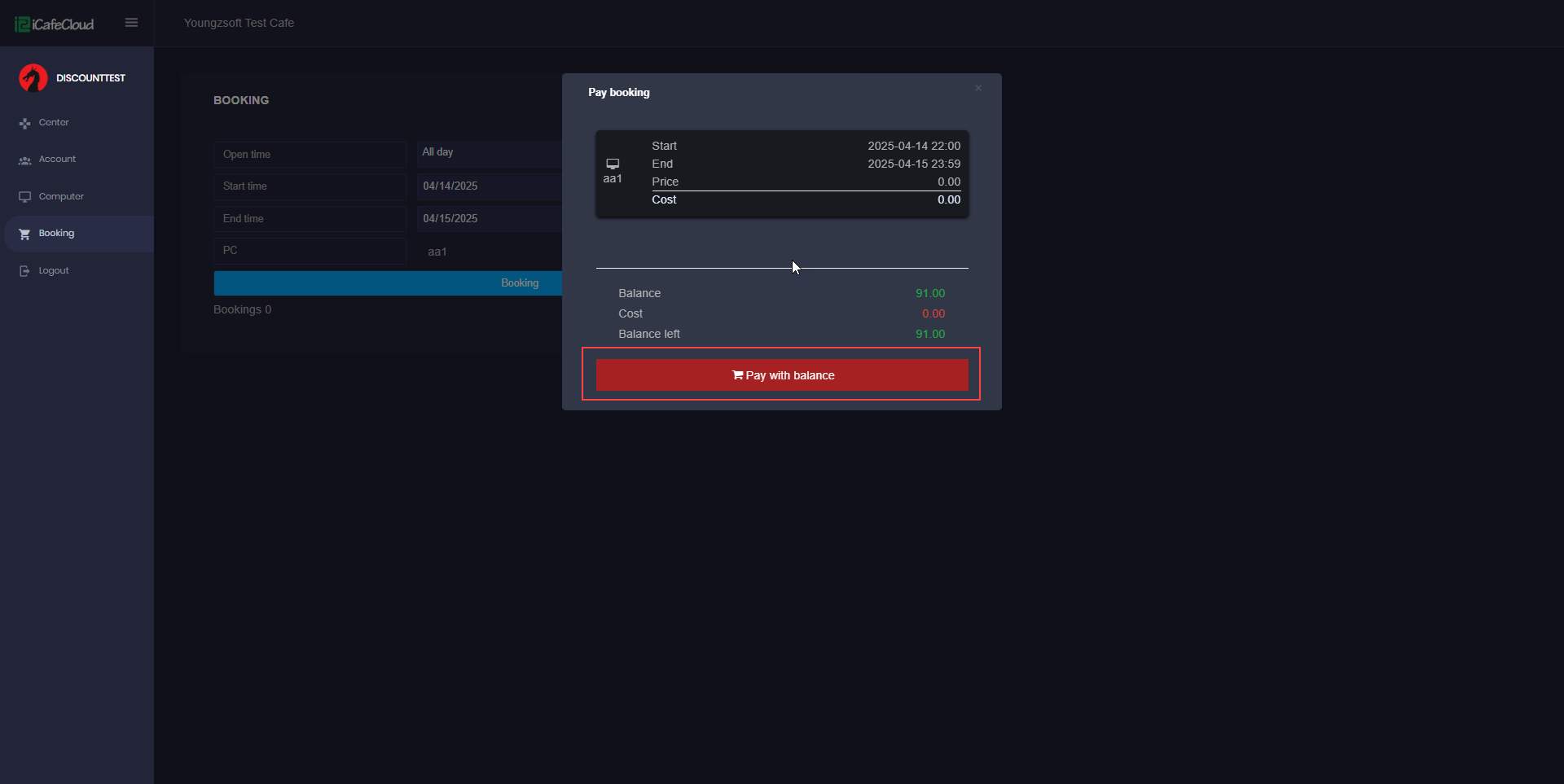 - The amount to be paid will be displayed. Click Pay by Balance to complete the booking and start the session.(Figure 5)