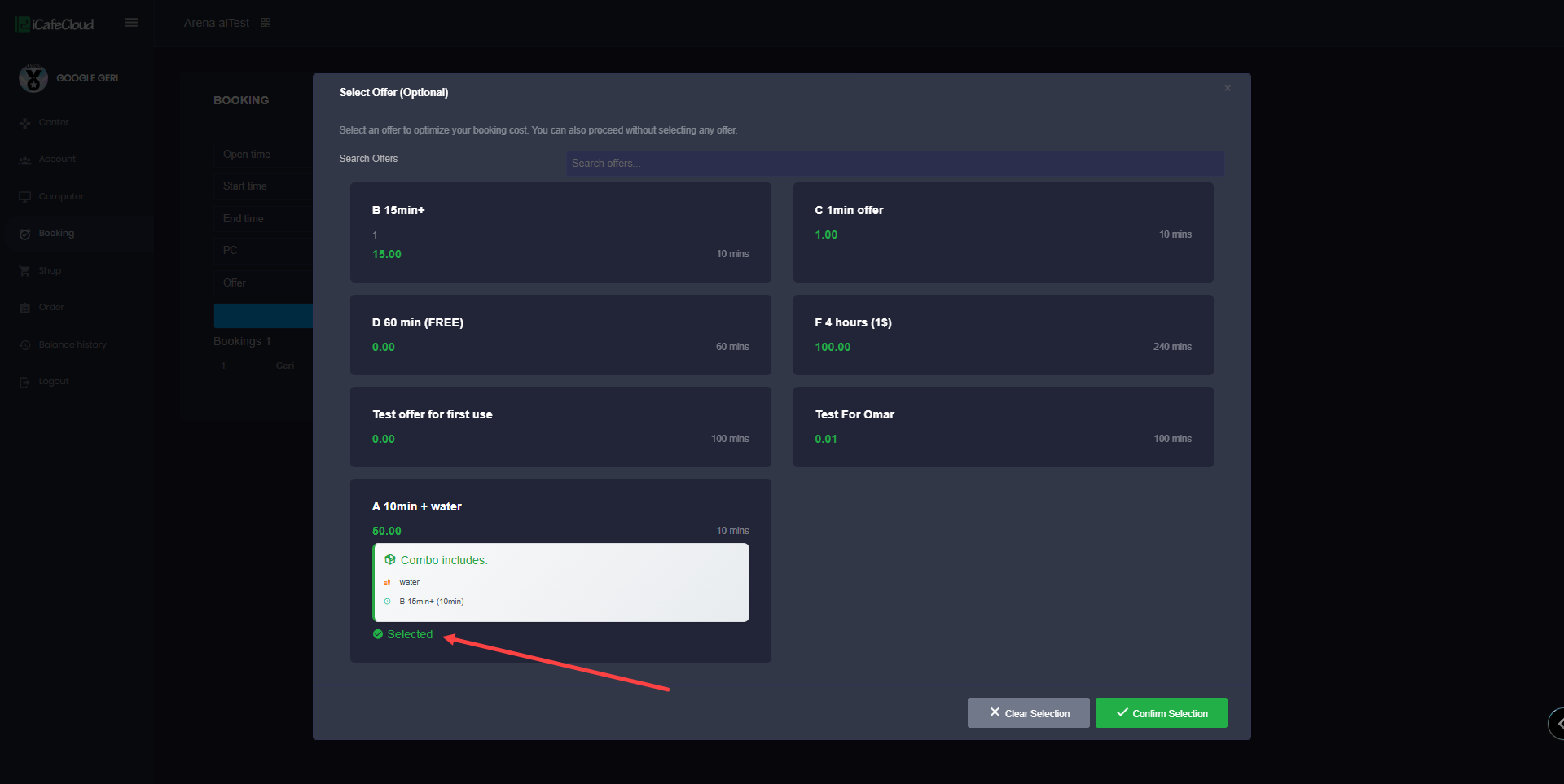 - To book a PC using an offer, first select the PC you want to book, then click on the offer. (Figure 2)