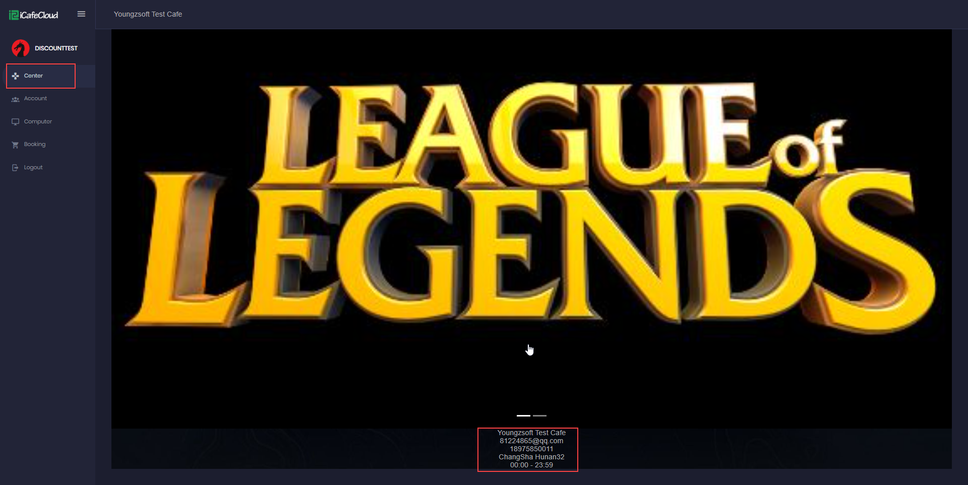 - After a successful login, the first page called "Center" will be displayed. It shows the center’s news with images, along with address details, contact information, and opening/closing hours.(Figure 1)