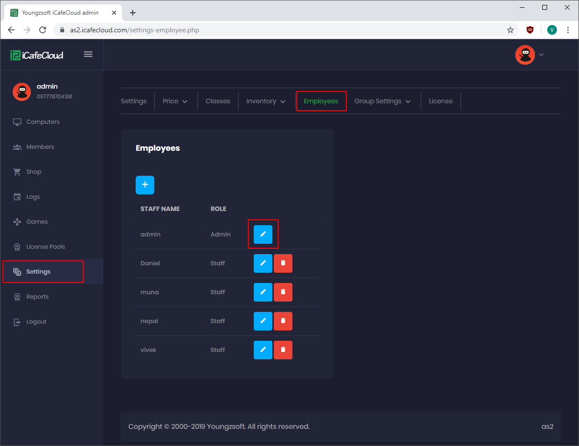 - Now, next time you login to iCafeCloud web admin, use the new password you just set.