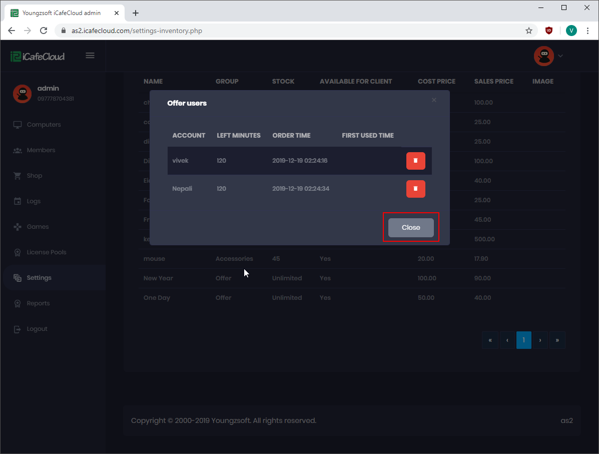 - Go to product items from setting, right click on an offer (Figure 1).