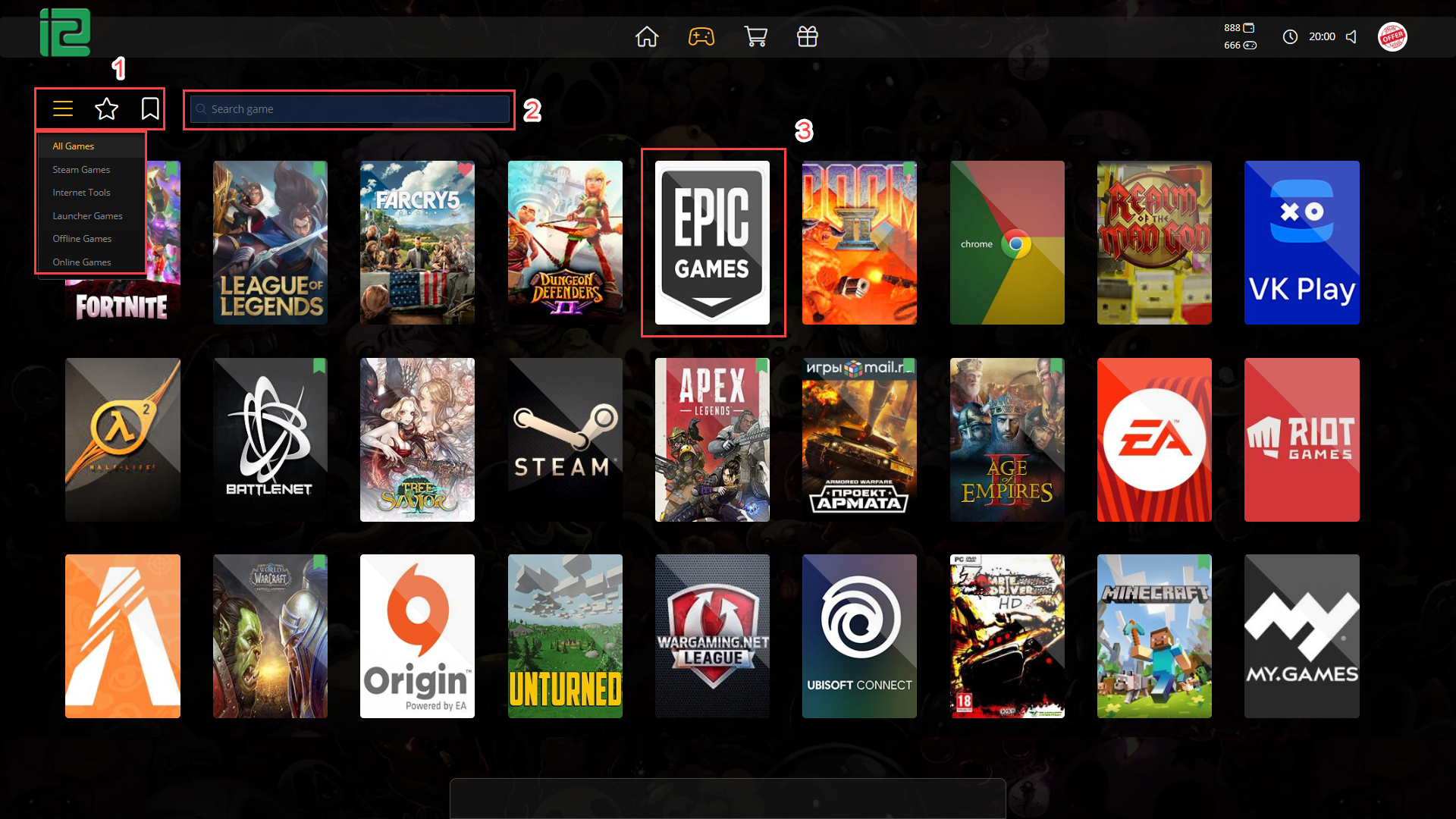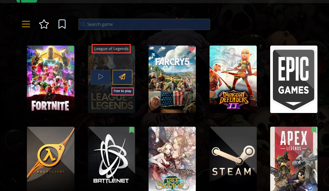 - 3 types of arrange games First to choose which type of games you need to see, Second is favorite games, third is free to play games