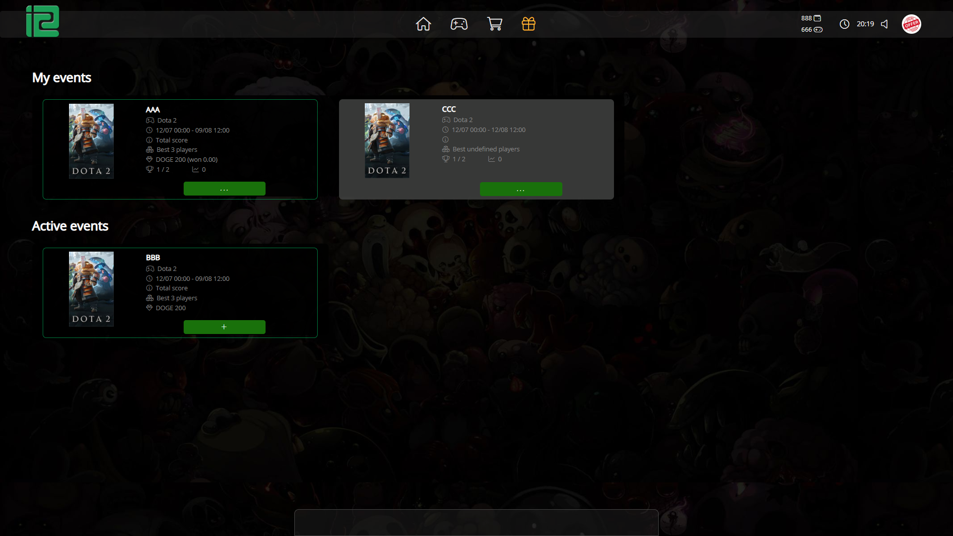 This page for the games Events and tournaments to make member joins this events and read details about it