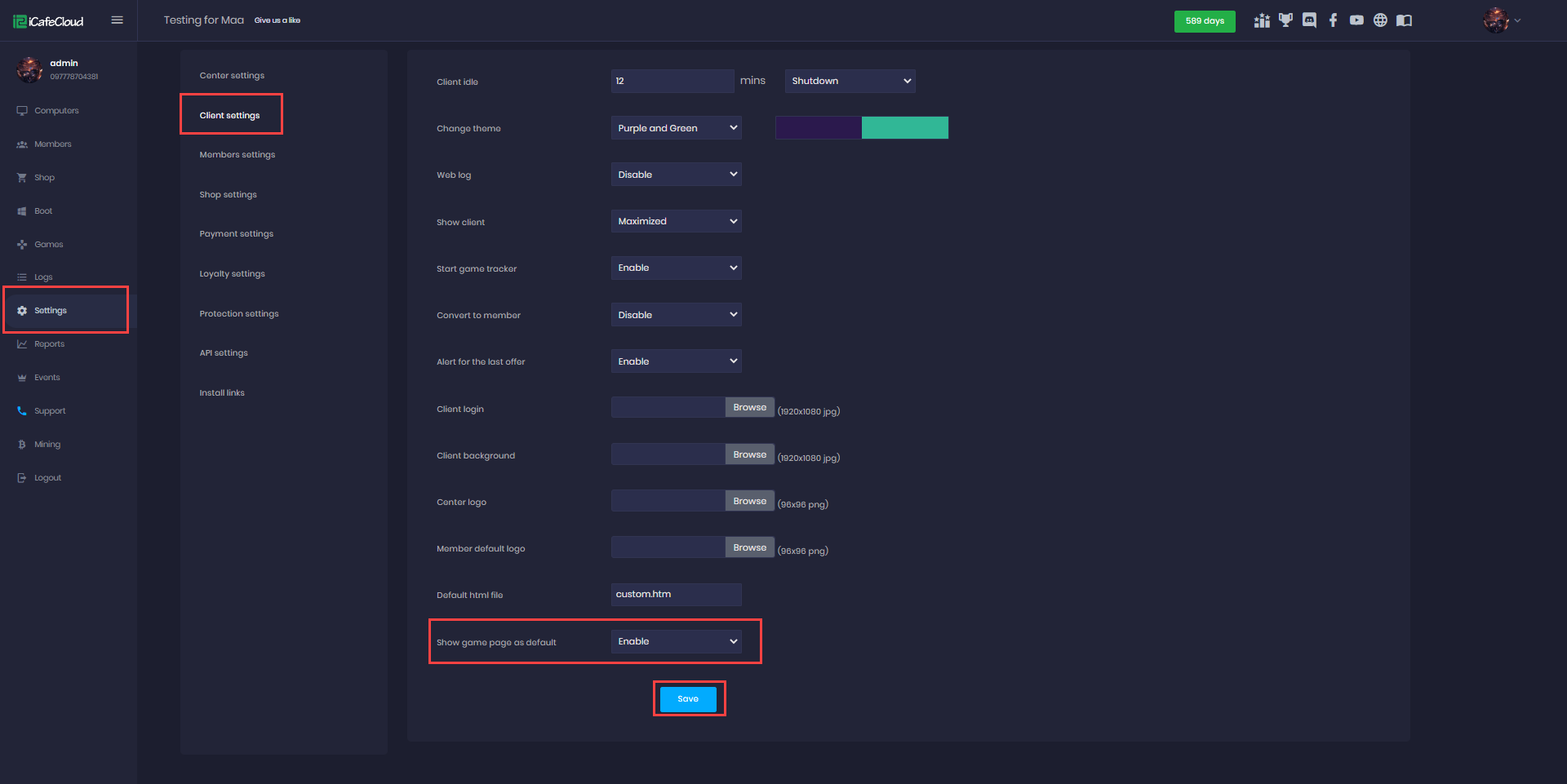 Enable the "Show game page as default" option in CP settings to bypass the Home Page and direct clients to the Games Page upon login.