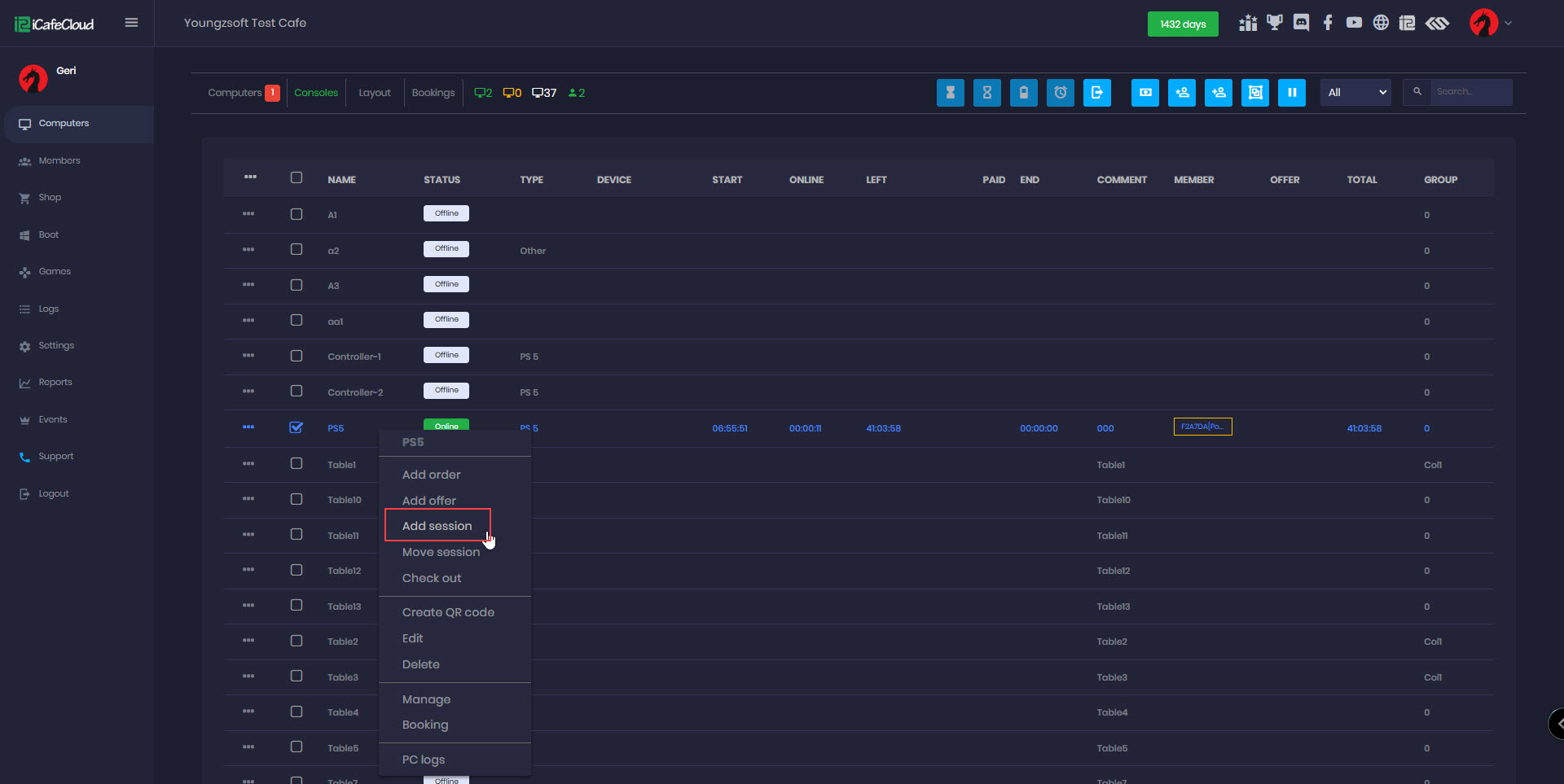- Select the console you want to use and start a session.
