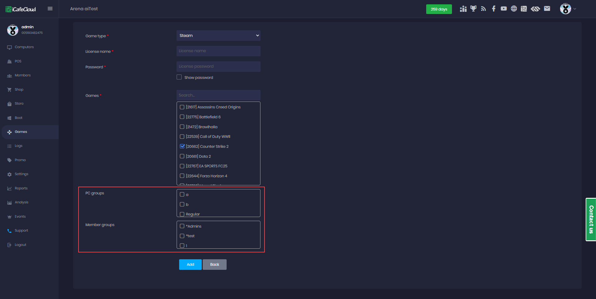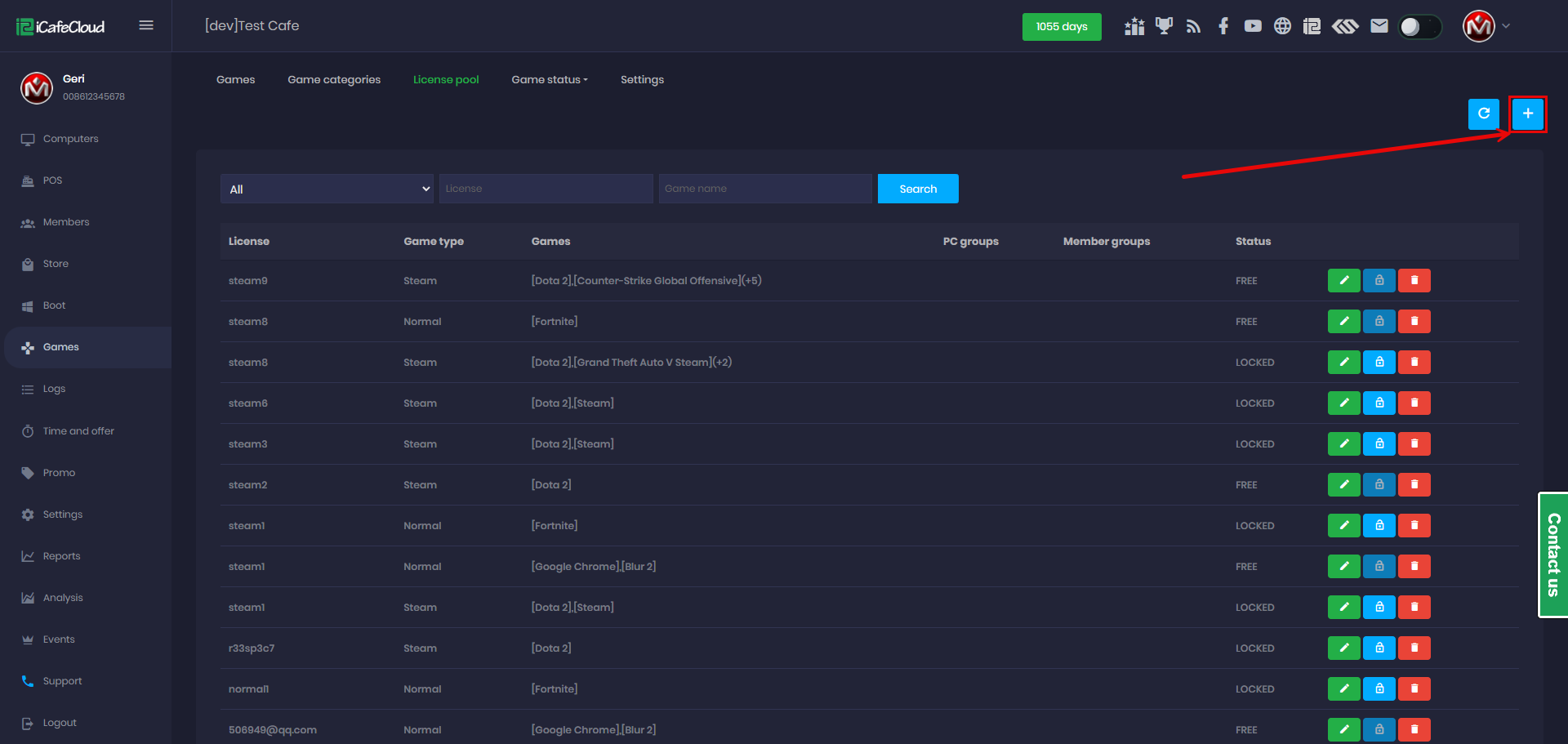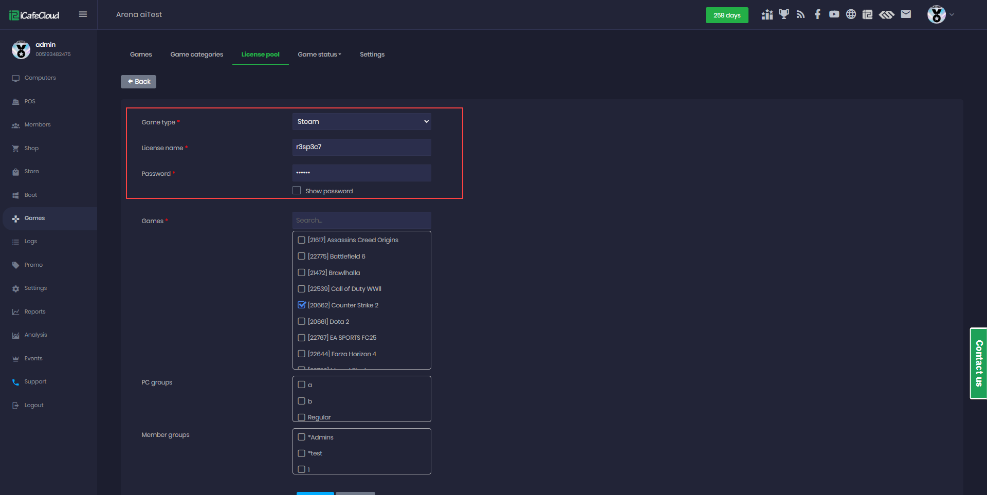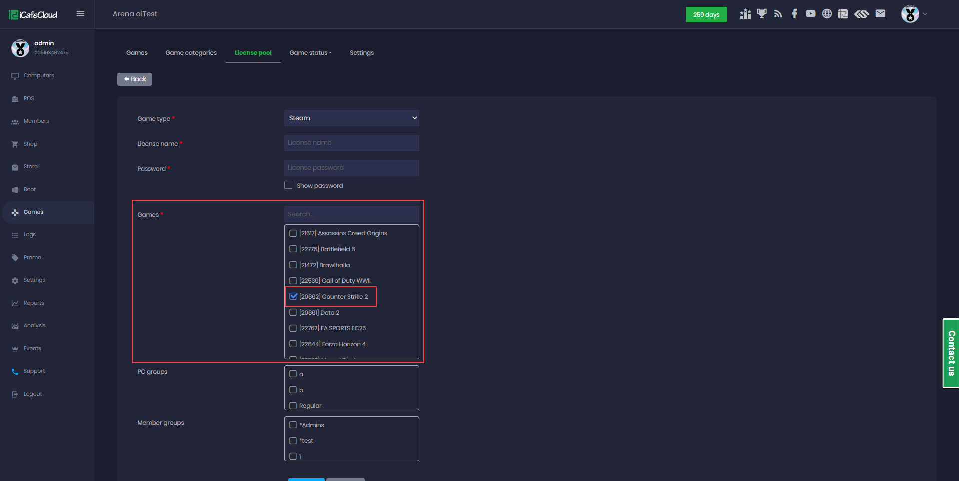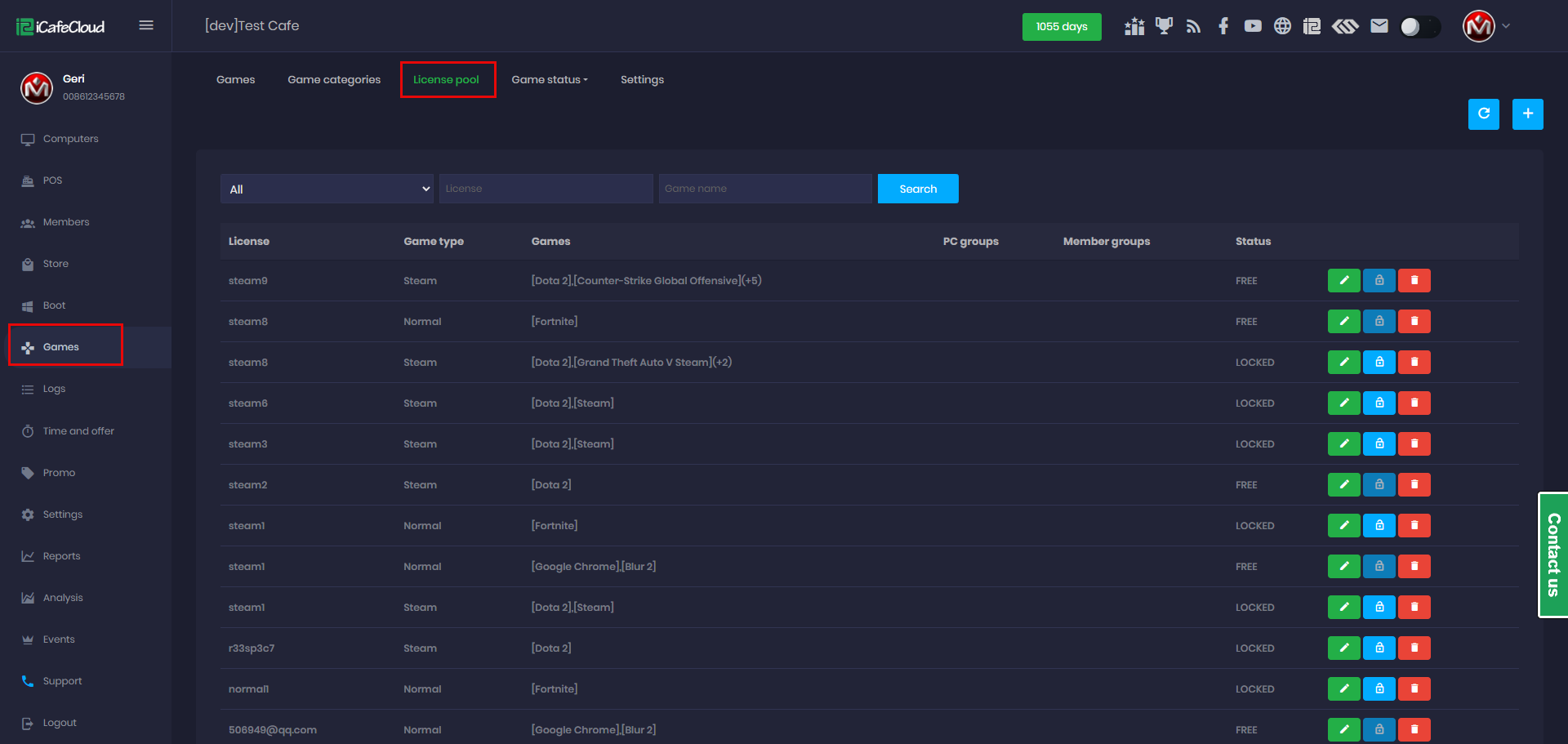 - Navigate to the Game page and click on License Pool to manage the game account. (Figure 2)
